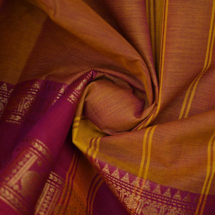 • Kanchi Cotton sarees have pretty colors and borders with traditional designs. People who like tradition and style love these sarees. They’re simple yet charming, great for anyone who wants a classic look with a modern twist.