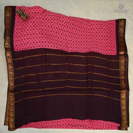 9 Yards Sungudi Cotton Sarees – Strawberry Pink SASTC0033460