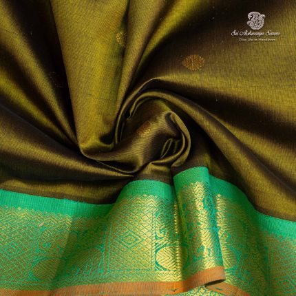 Silk Cotton Sarees Korvai – Dark Olive Green SAS0035331