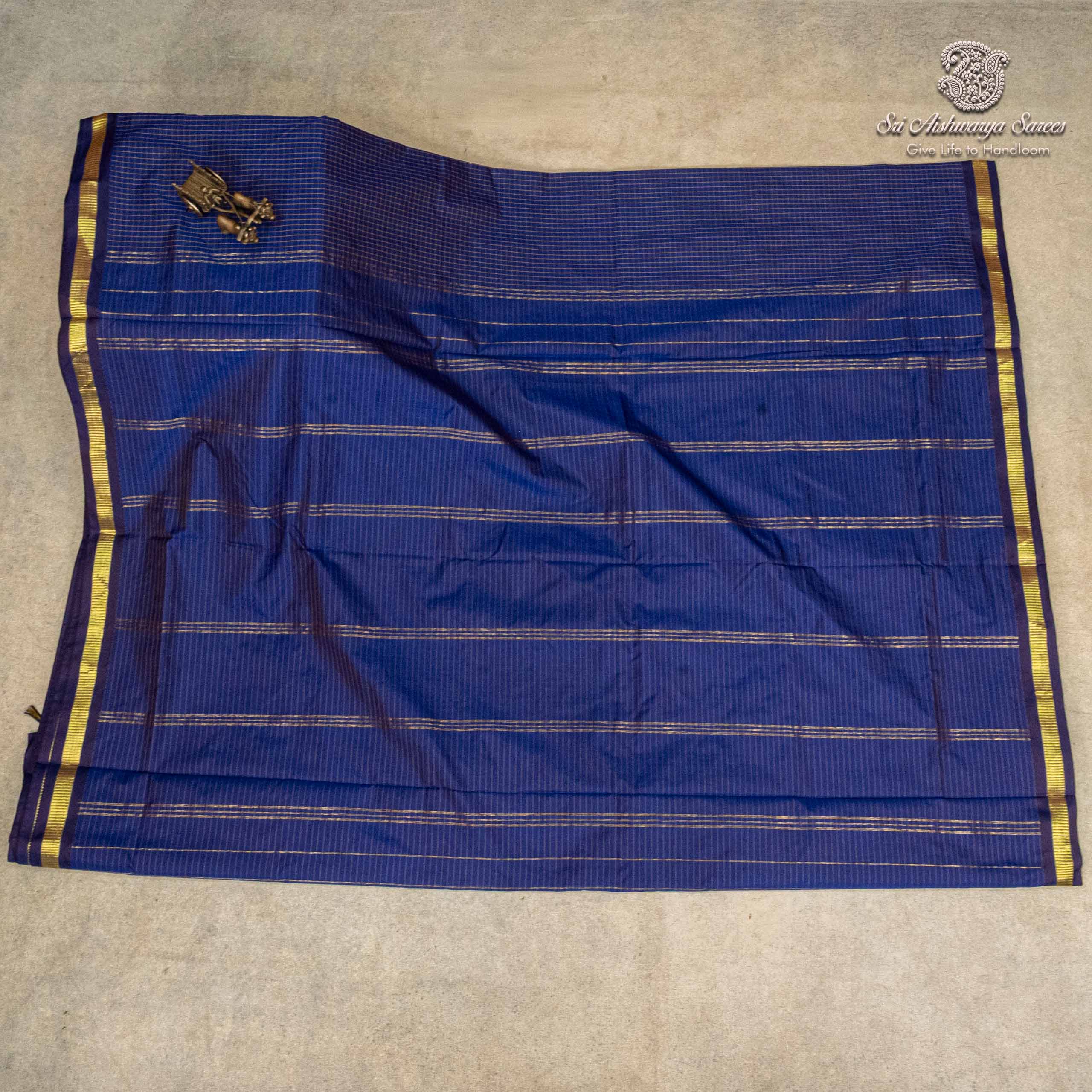 • 10 Yards Kalyani Cotton Saree in dark navy blue. A graceful pick for those attending traditional weddings or family gatherings.