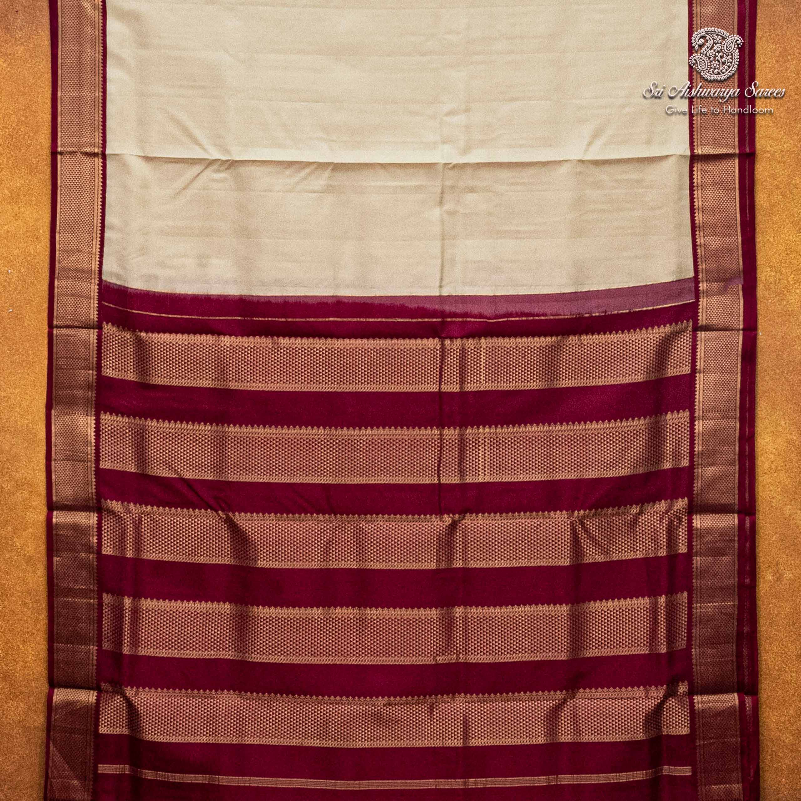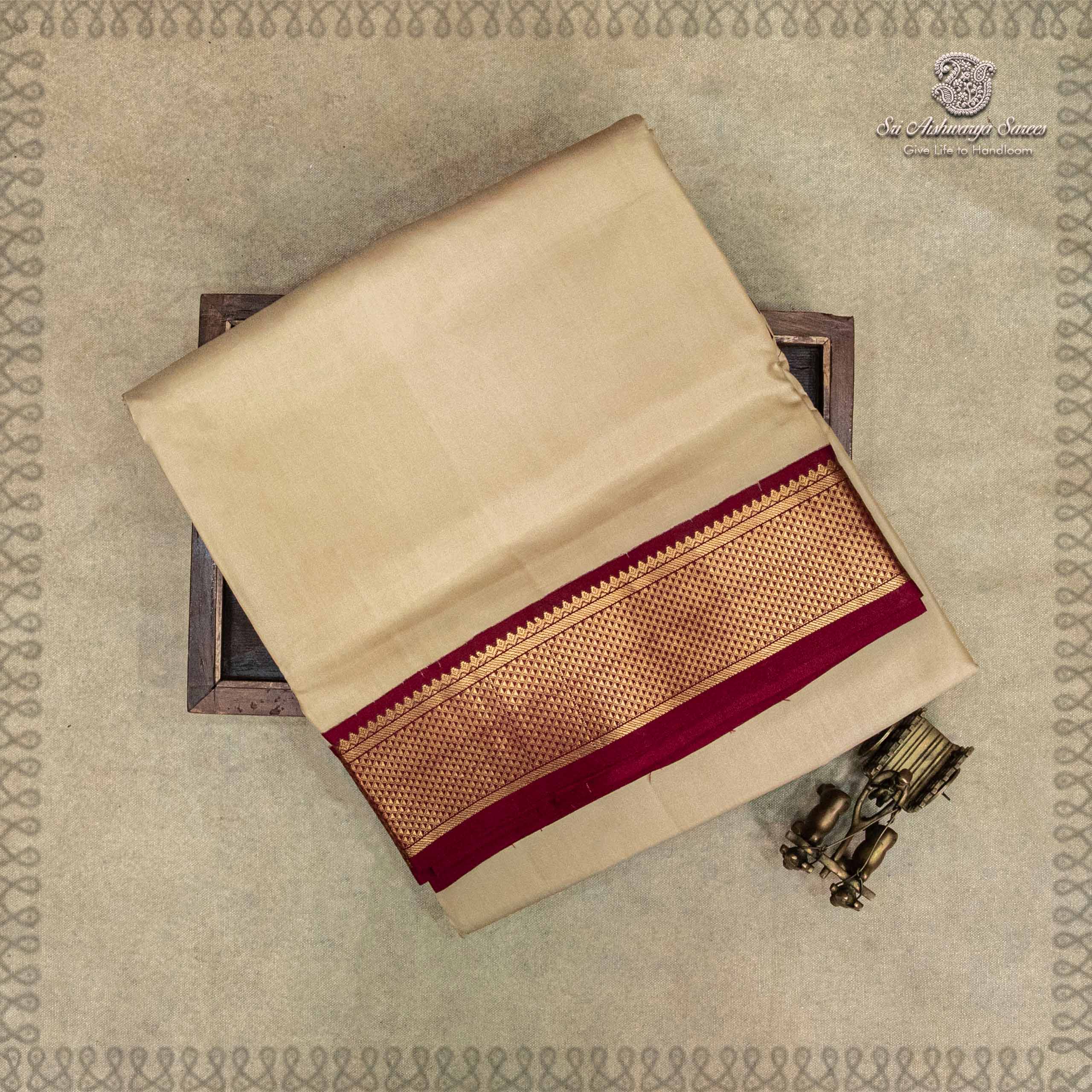 10 yards pure silk in Beige, The intricate weaving bring out timeless South Indian heritage. Ideal for women who prefer classic elegance during traditional occasions and festive gatherings.