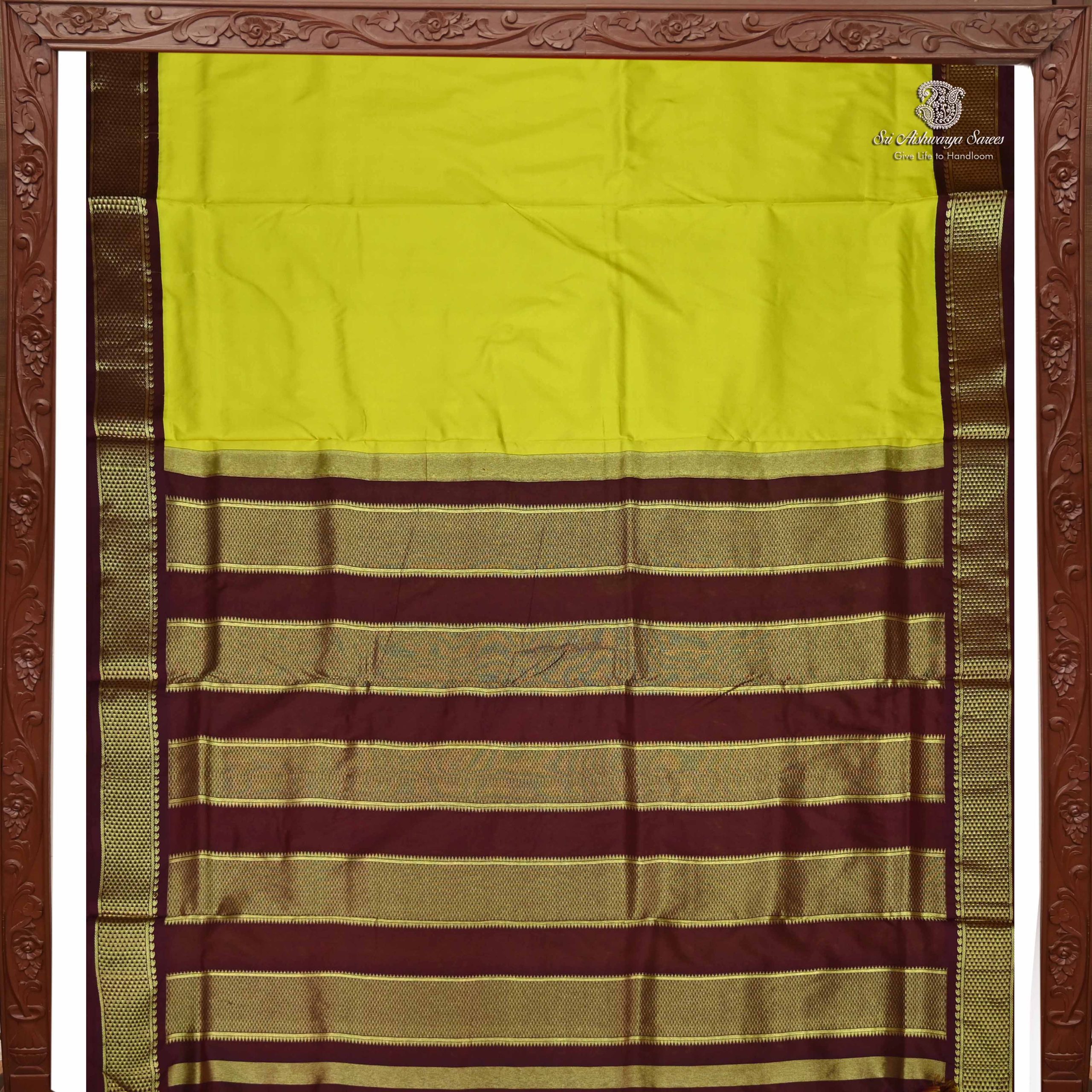 Experience the timeless charm of tradition with our 10 yards Madisar saree online, beautifully crafted from 100% pure silk saree and certified by the Silk Mark of India. This elegant Golden Yellow pure silk saree is ideal for religious ceremonies, weddings, and Bharatanatyam performances, perfectly suited for Iyer and Iyengar Madisar drapes.