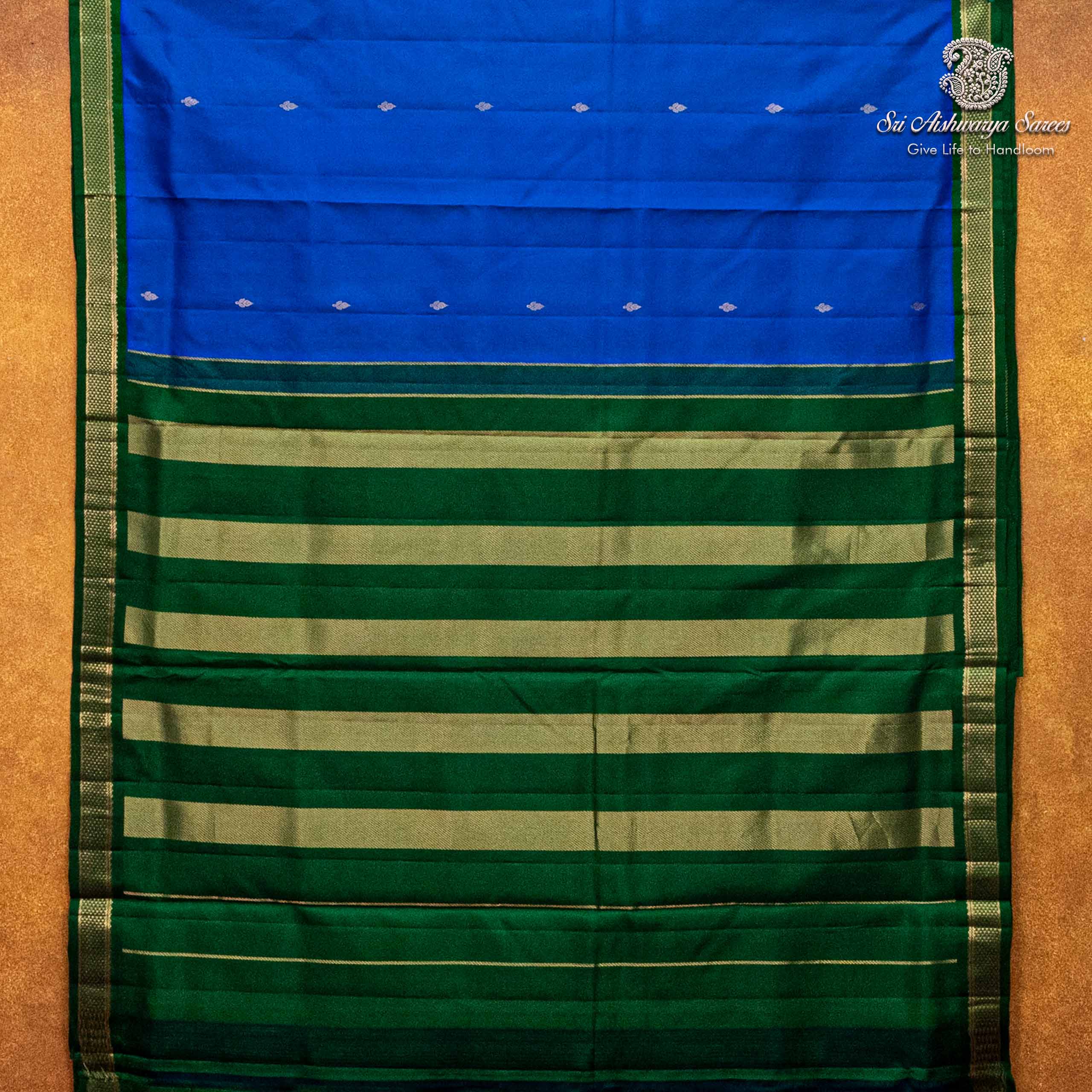 10 yards pure silk in MS Blue shines with Dark Green Korvai Border. The bold contrast and intricate weaving bring out timeless South Indian heritage. Ideal for women who prefer classic elegance during traditional occasions and festive gatherings.
