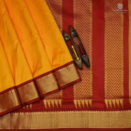 • Royal blue 10 yards pure silk saree with elegant checks all over the body. Paired with a matching self-design pallu and traditional golden zari border. Best for women attending poojas, weddings, or traditional events.