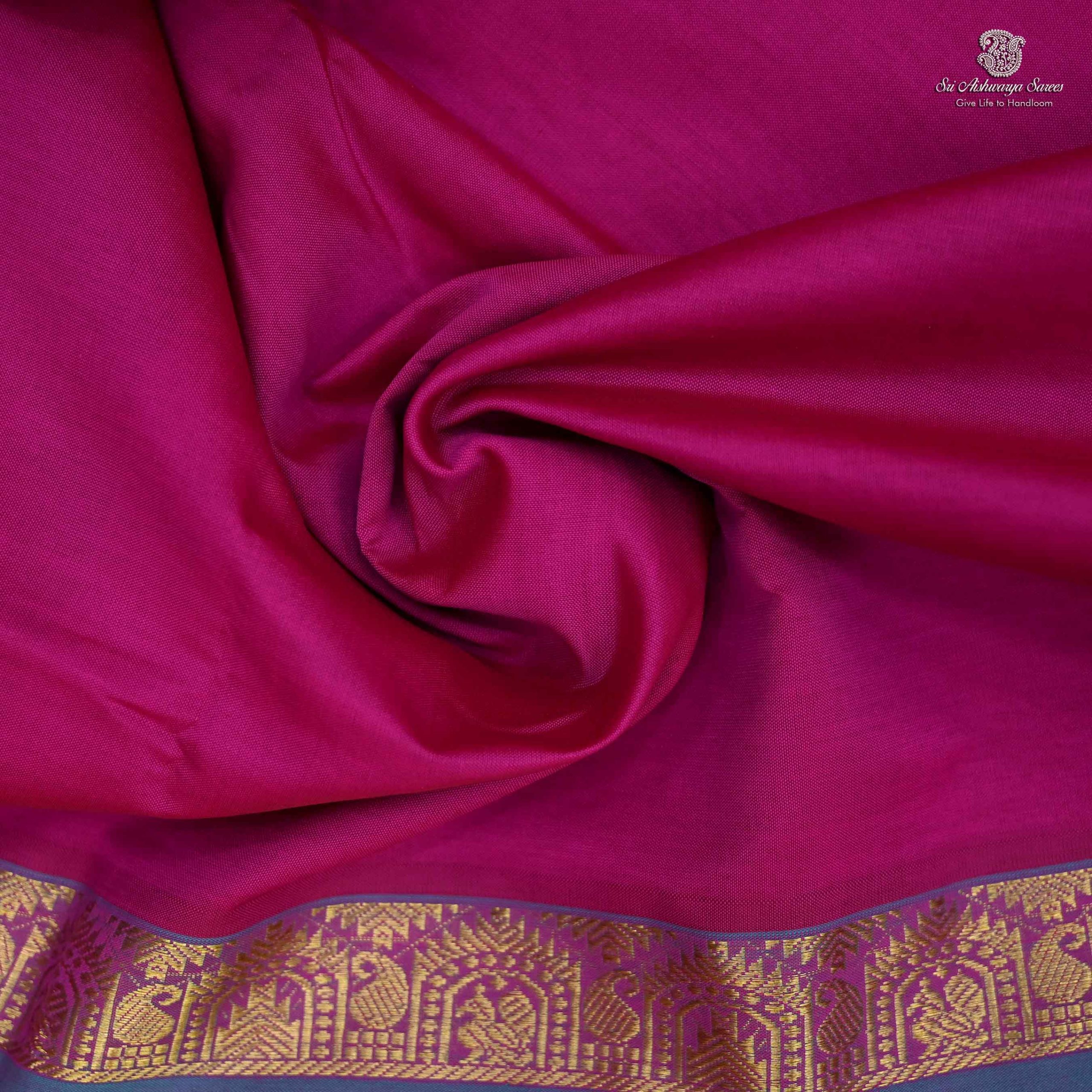 vibrant 10-yard semi silk cotton saree in rich magenta with a peacock blue pallu and plain border.