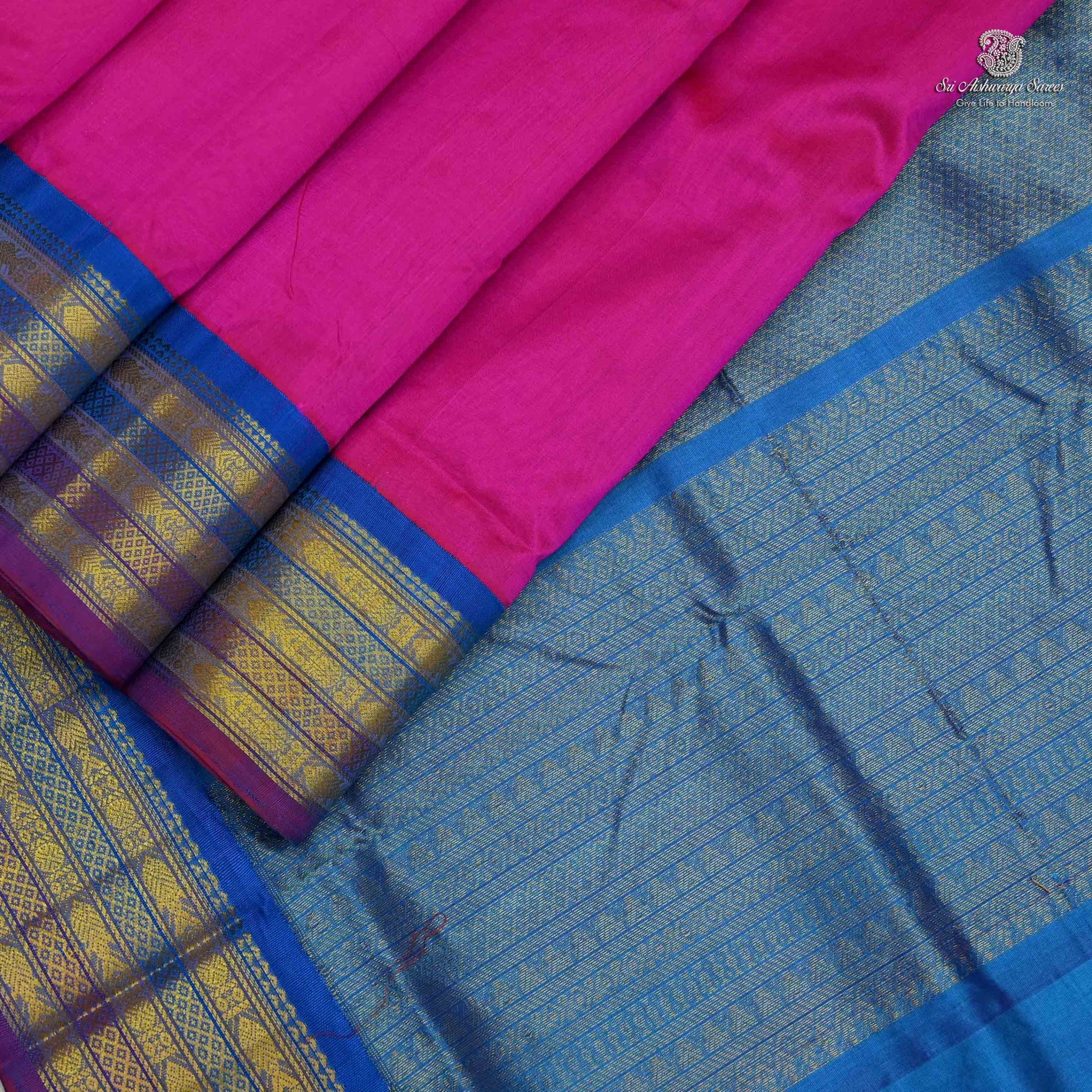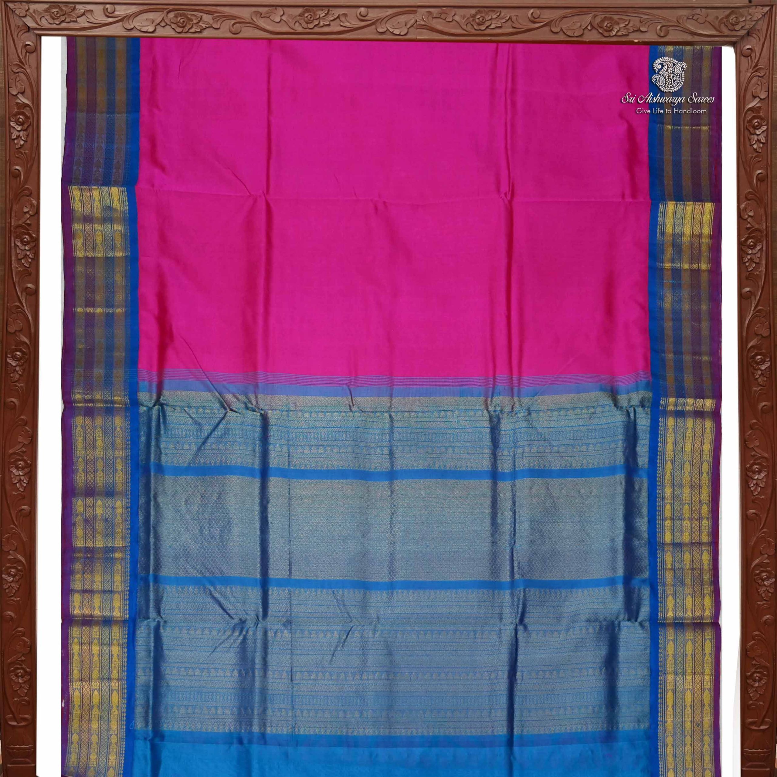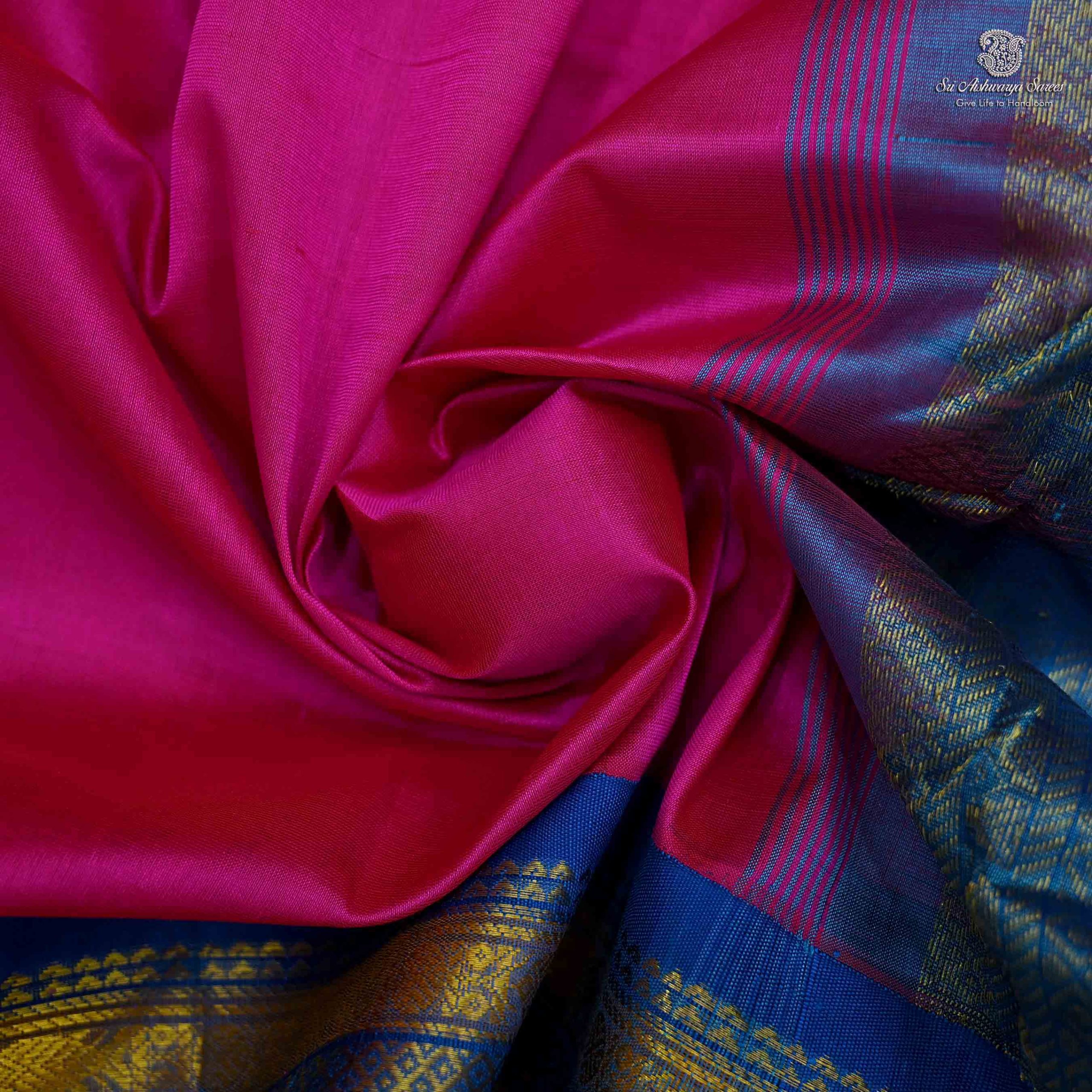 This Deep Pink 10 yards silk cotton saree is crafted from premium pure handloom silk cotton, making it a perfect choice for religious ceremonies, Iyer/Iyengar weddings, and classical events. Ideal for draping as a Madisar saree, this piece blends cultural authenticity with modern-day comfort.