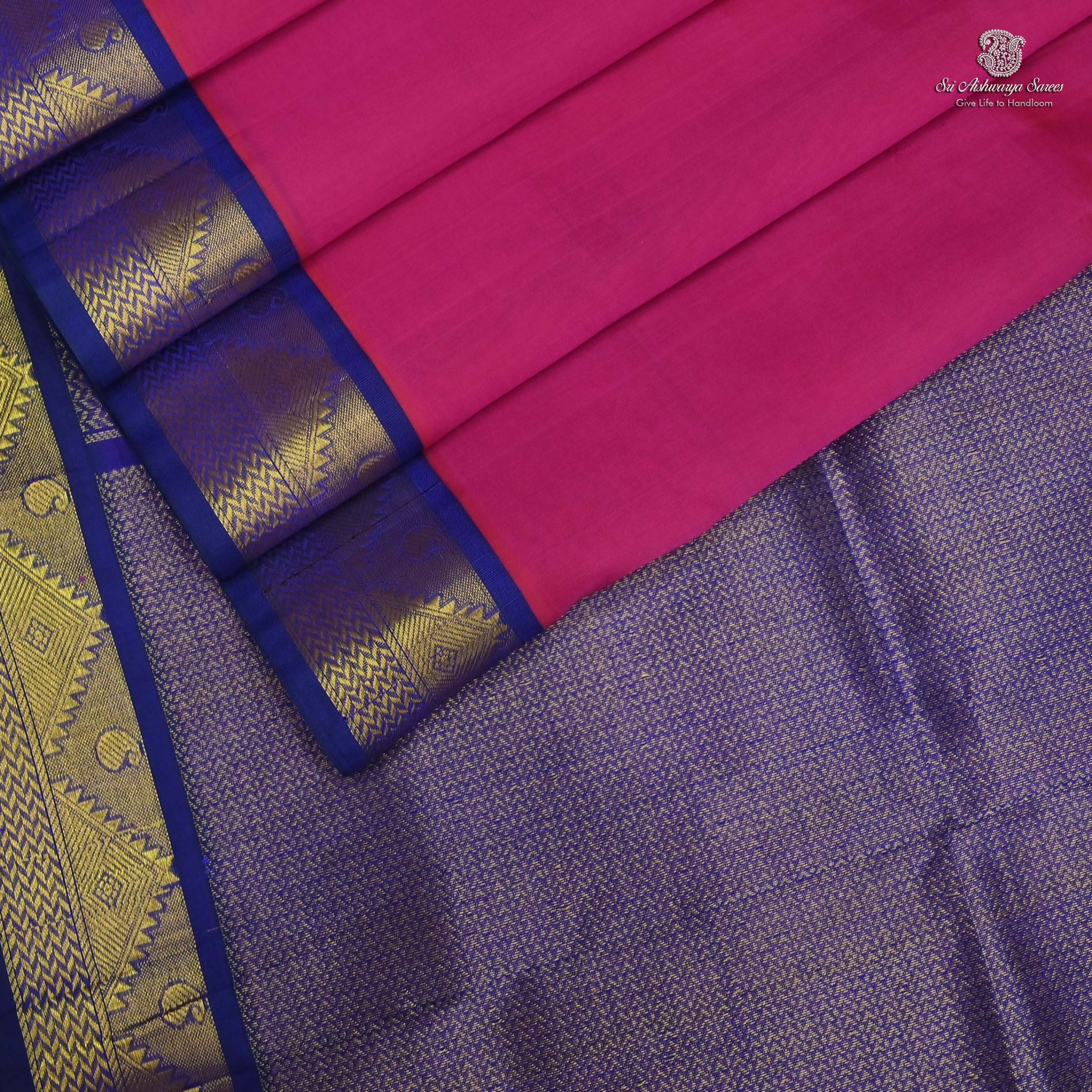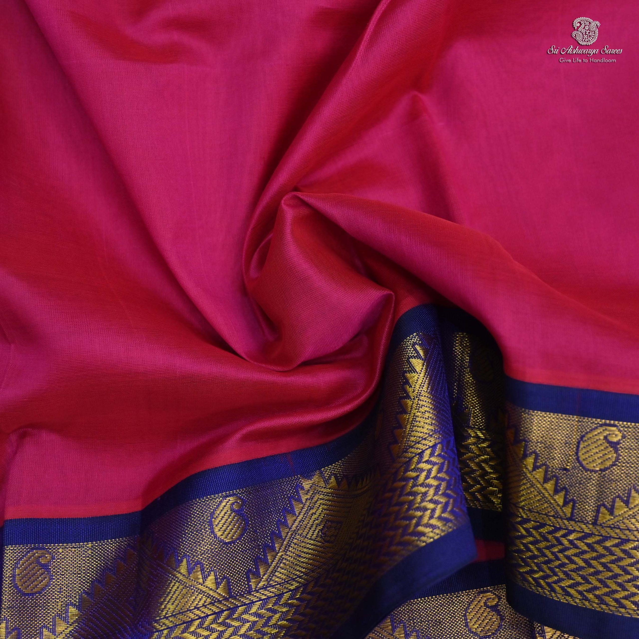 This Deep Pink 10 yards silk cotton saree is crafted from premium pure handloom silk cotton, making it a perfect choice for religious ceremonies, Iyer/Iyengar weddings, and classical events. Ideal for draping as a Madisar saree, this piece blends cultural authenticity with modern-day comfort.