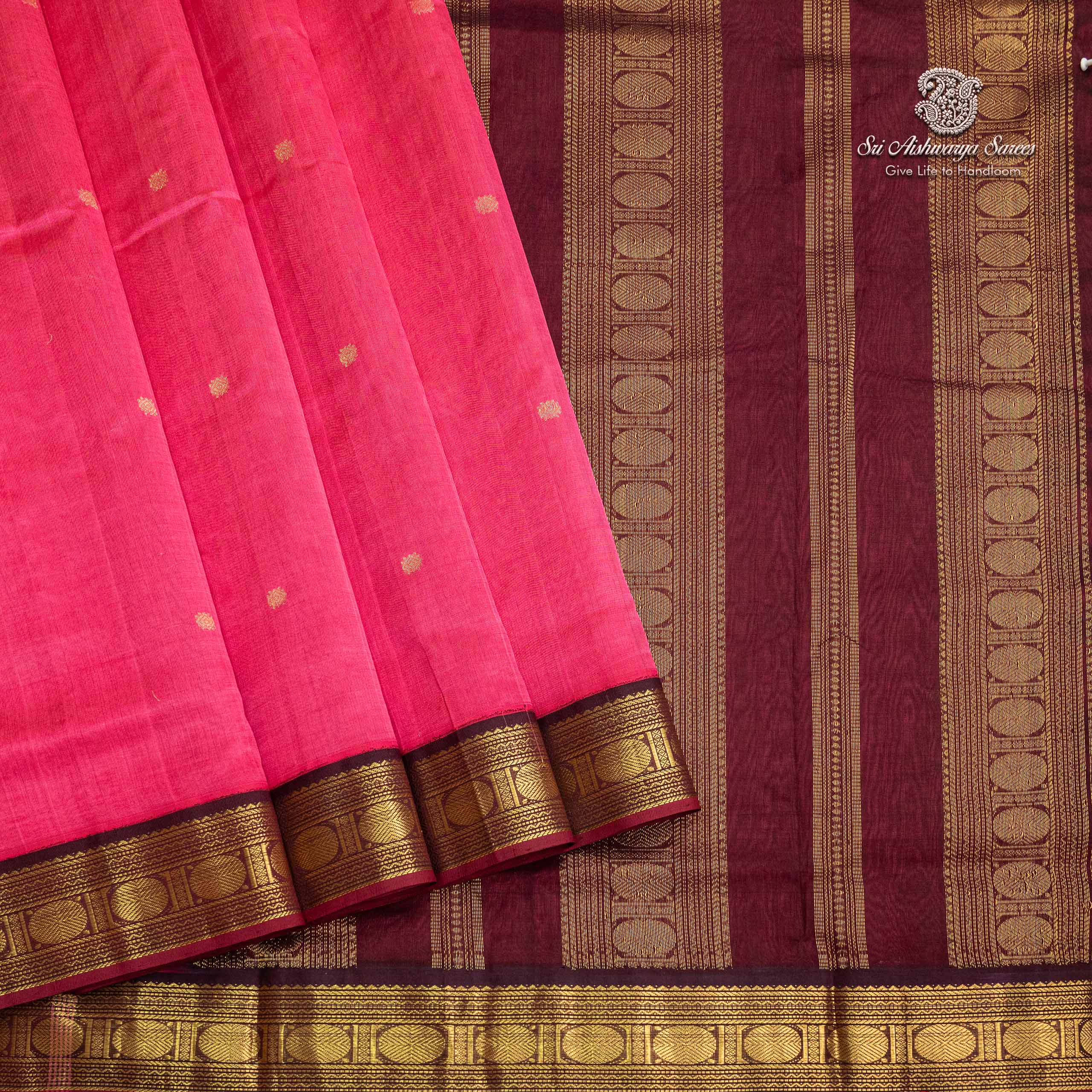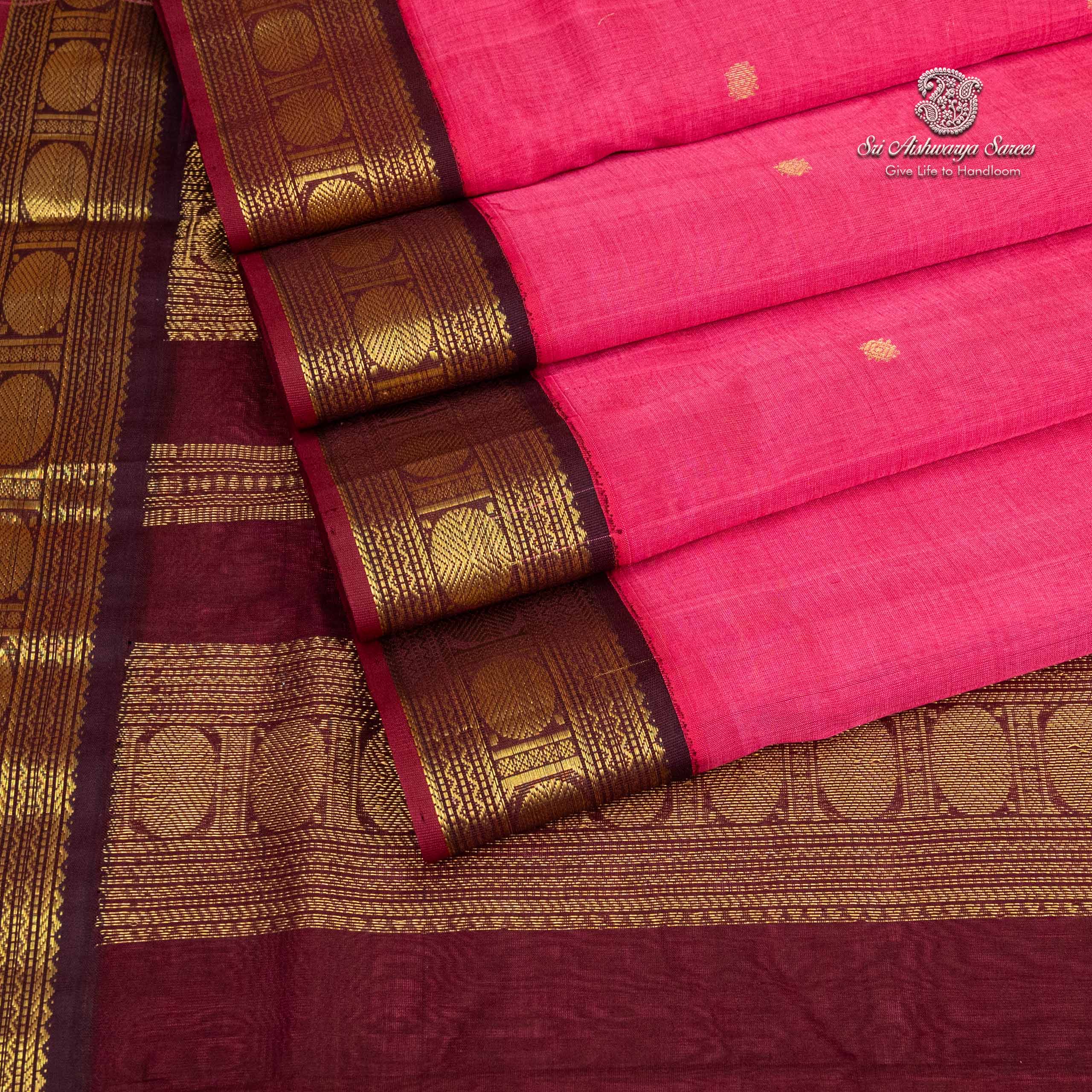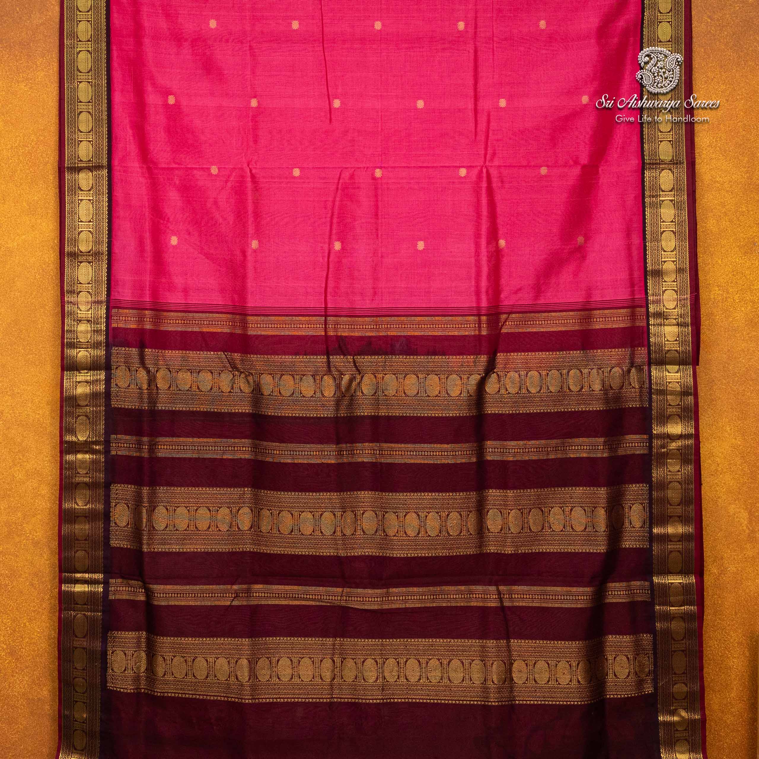This Magenta Pink 10 yards silk cotton saree is beautifully woven in premium pure handloom silk cotton. It is a graceful choice for religious ceremonies, Iyer/Iyengar weddings, and classical events. Specially designed for Madisar draping, this saree offers a perfect balance of cultural authenticity and modern-day comfort.