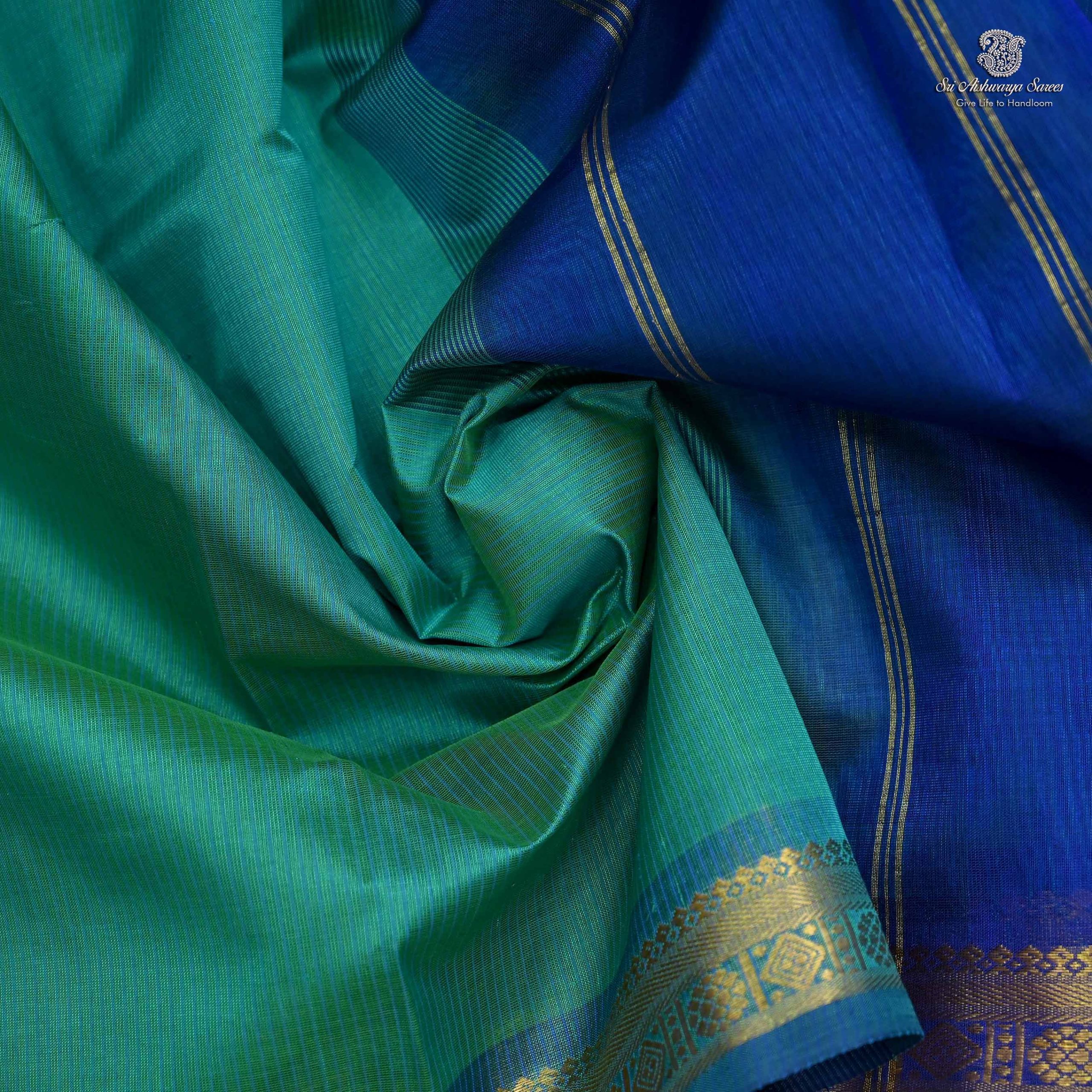 This Persian Green 10 yards silk cotton saree is crafted from premium pure handloom silk cotton, making it a perfect choice for religious ceremonies, Iyer/Iyengar weddings, and classical events. Ideal for draping as a Madisar saree, this piece blends cultural authenticity with modern-day comfort.