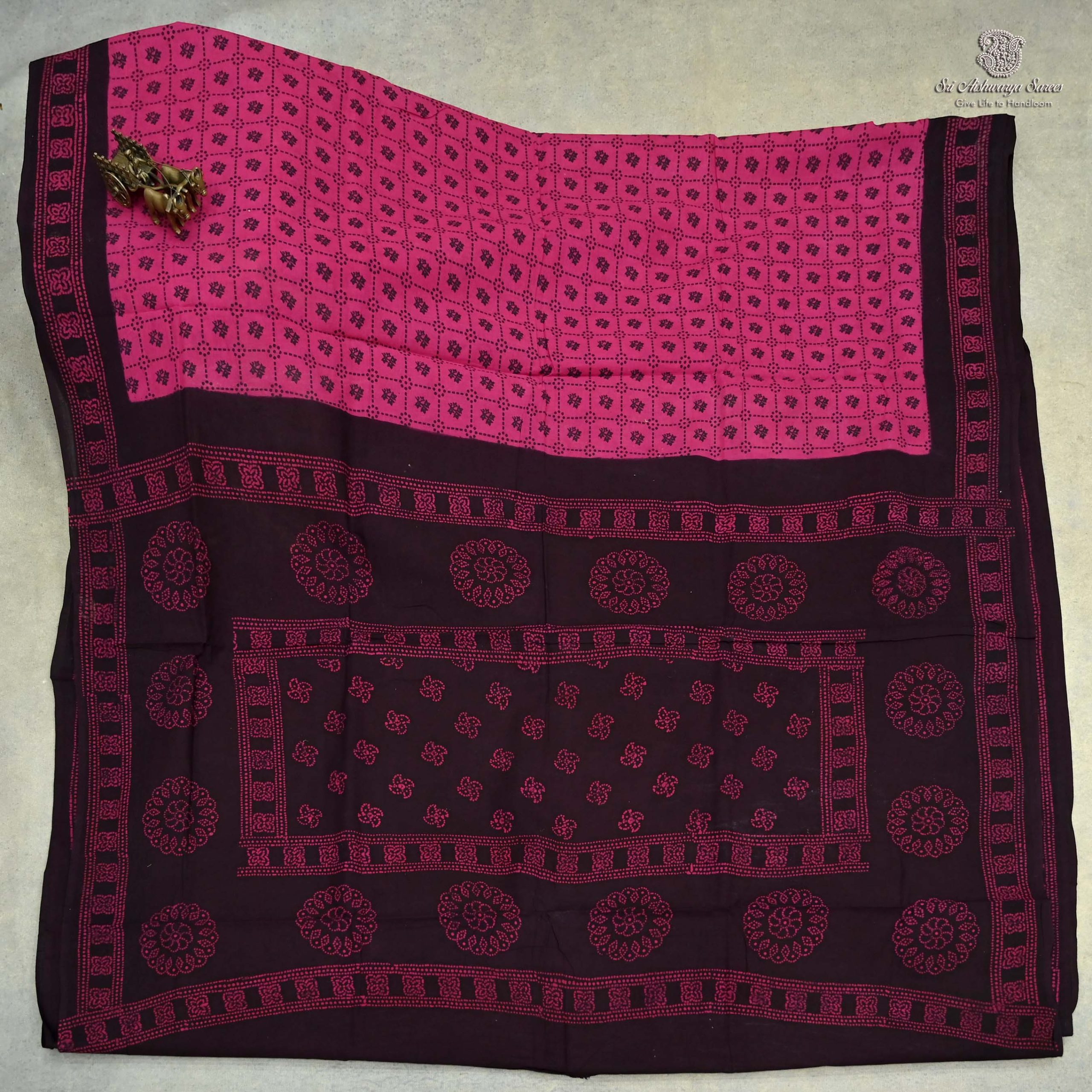 (10 Yards) Sungudi Cotton Saree – Rani Pink