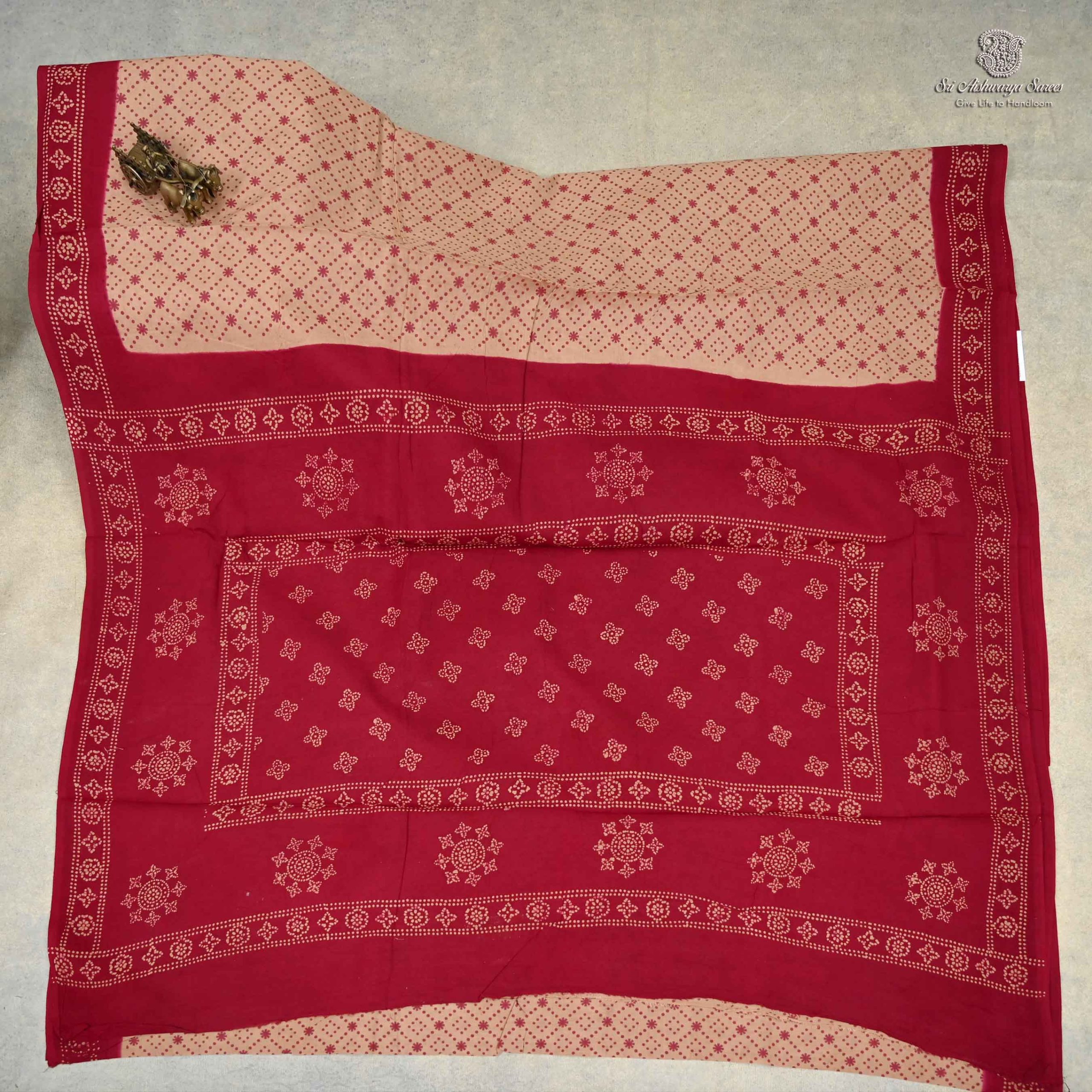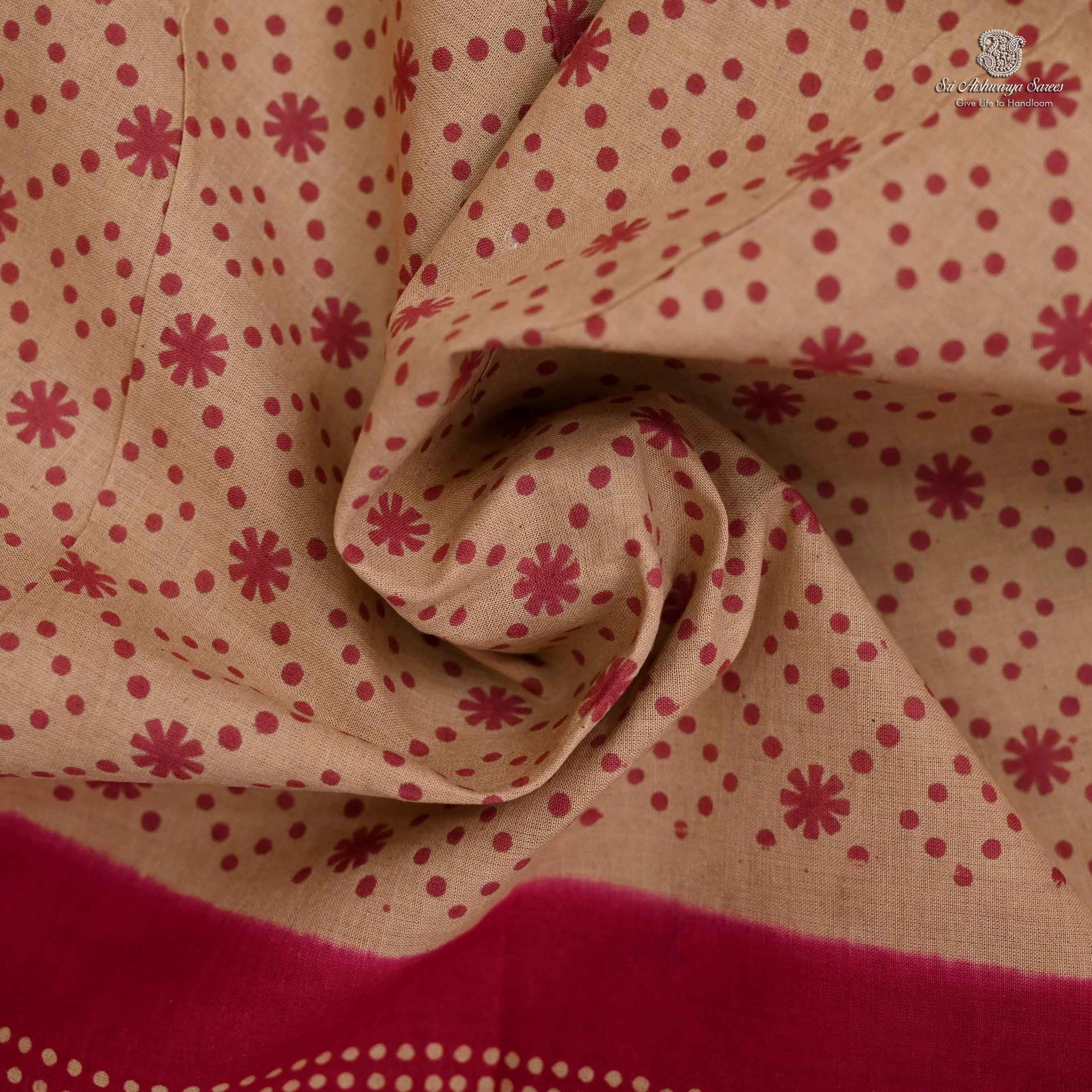 9 Yards Sungudi Cotton Sarees Cream beige colour