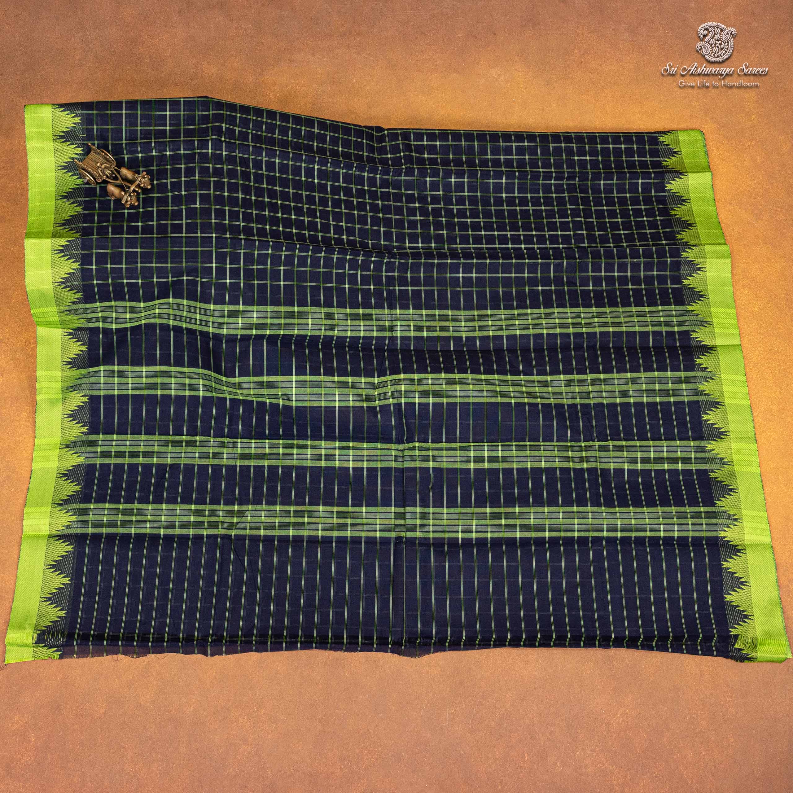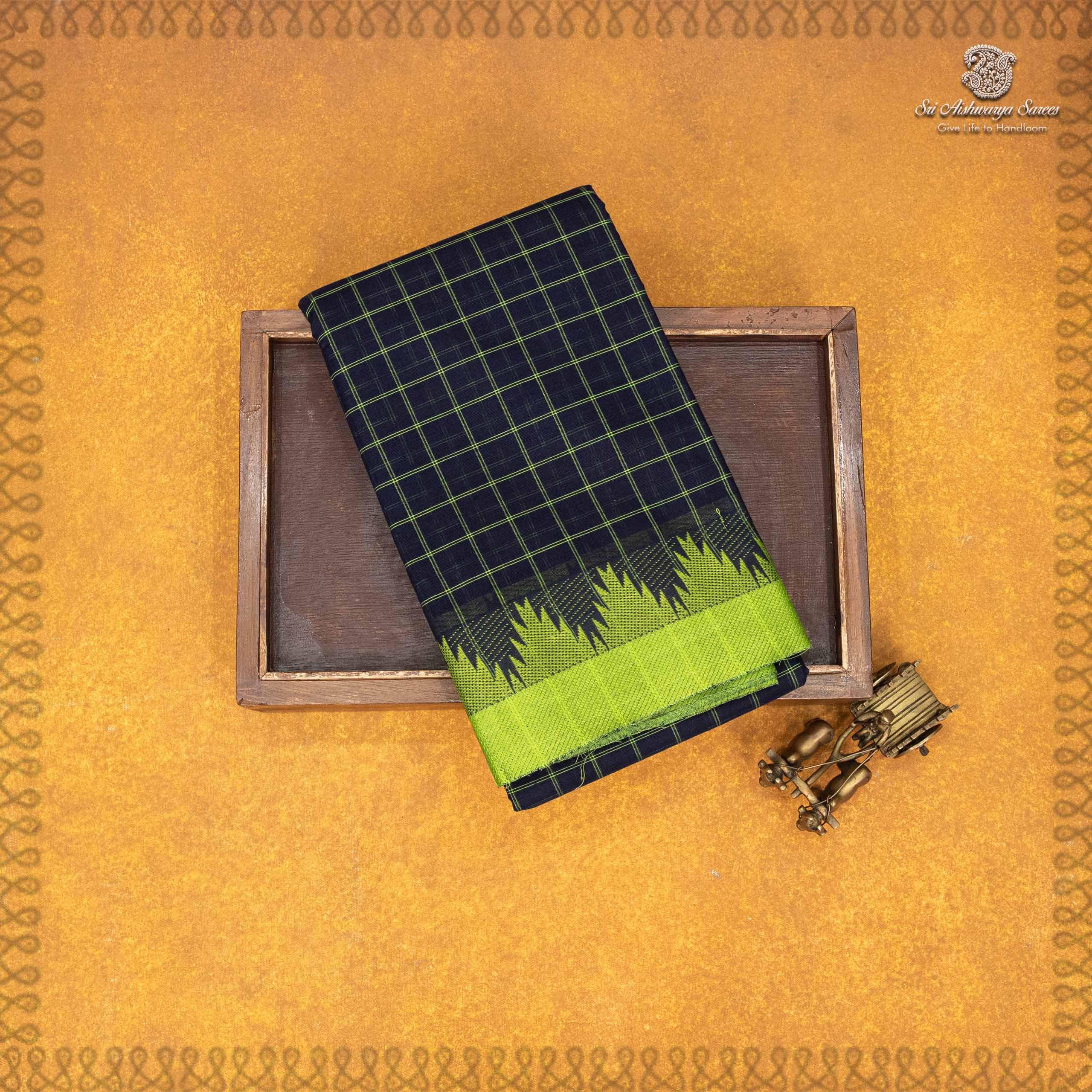Chettinad Cotton Saree Dark Navy Blue SASC35501