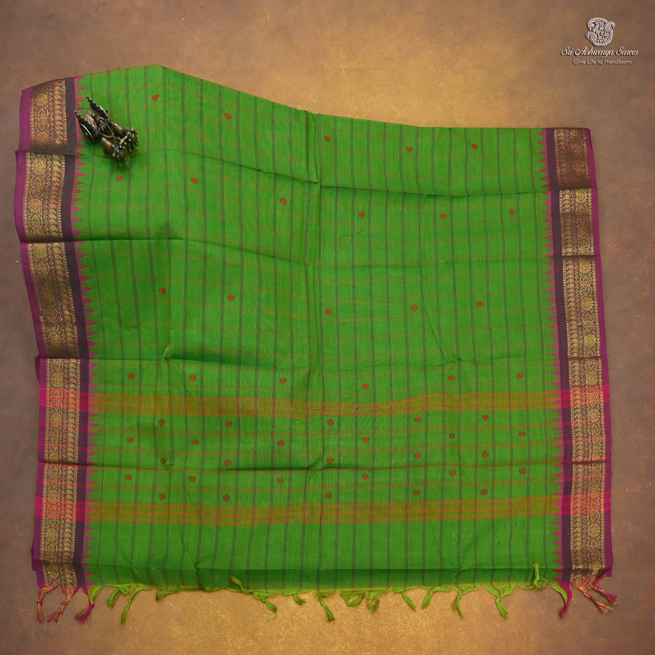 Chettinad Cotton Sarees Parrot Green SASC35062