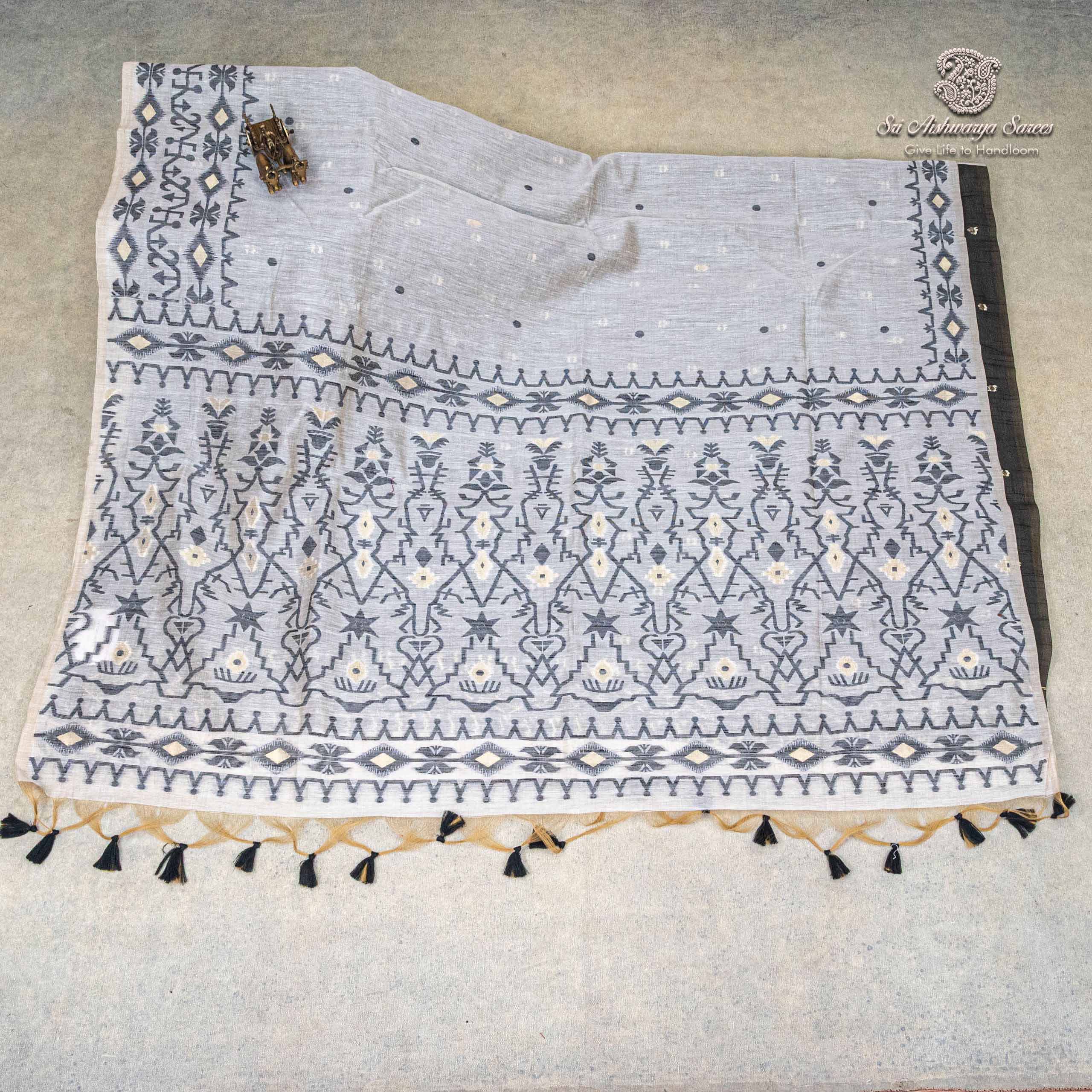 Experience the timeless elegance of a Jamdani weave cotton sarees, known for its intricate motifs and airy texture. Crafted with fine cotton, the delicate Jamdani weaving technique creates beautiful patterns directly on the loom. Lightweight and graceful, this saree is perfect for both everyday elegance and special occasions.