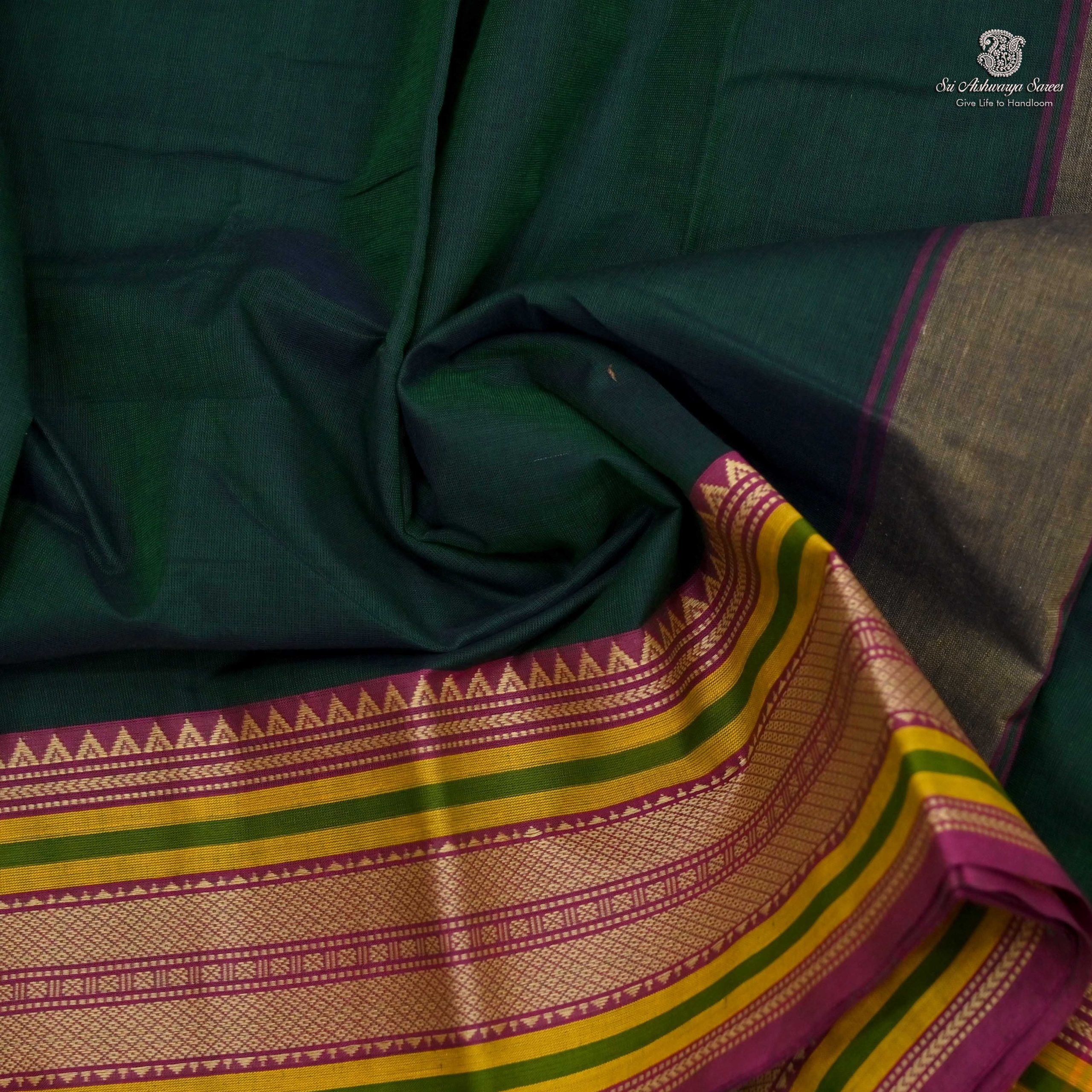 Kanchi Cotton Saree Dark Green