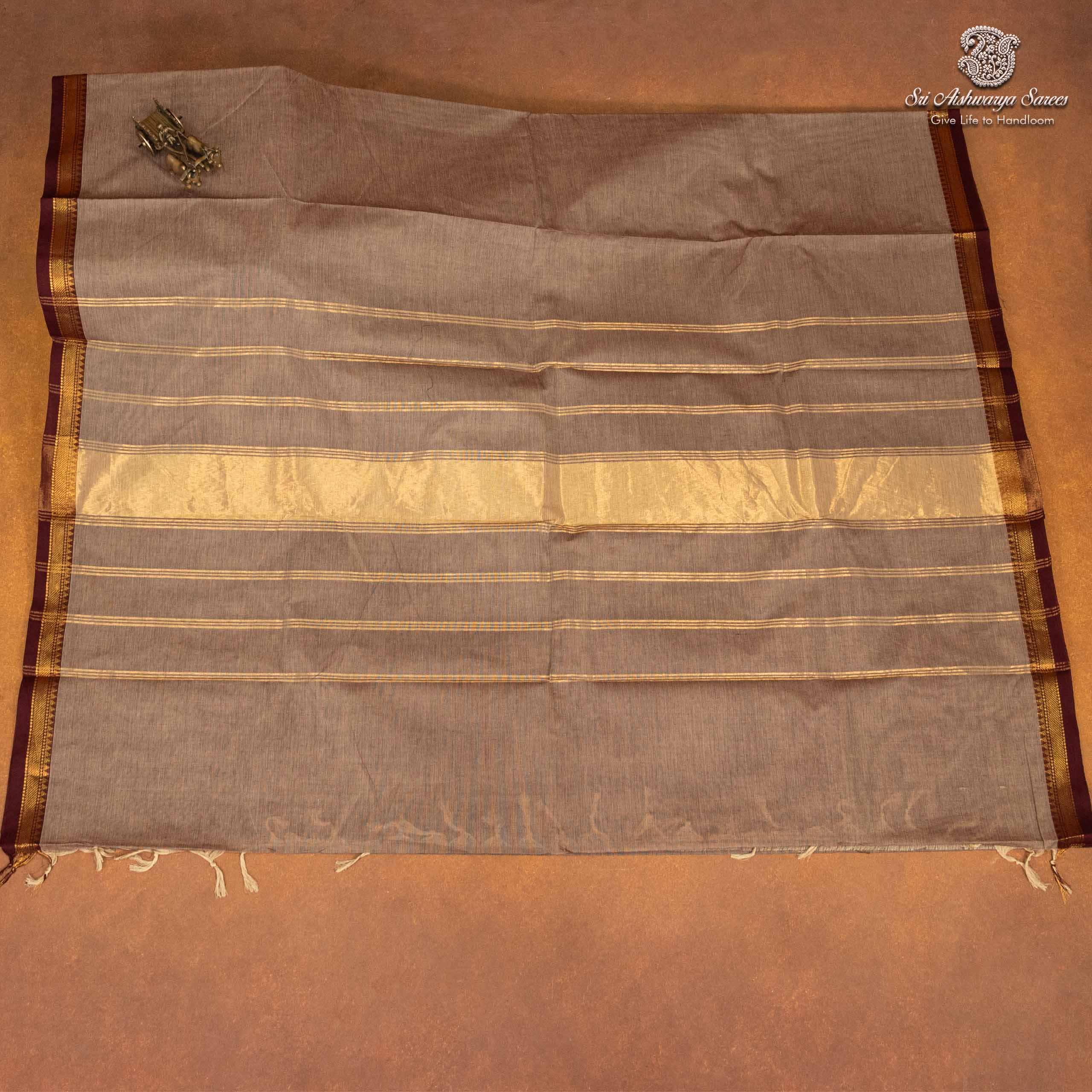 A Light chocolate cotton saree drapes with effortless grace, offering breathable comfort and a soft, natural texture against the skin. Its subtle weave and earthy elegance make it perfect for both everyday charm and special gatherings.