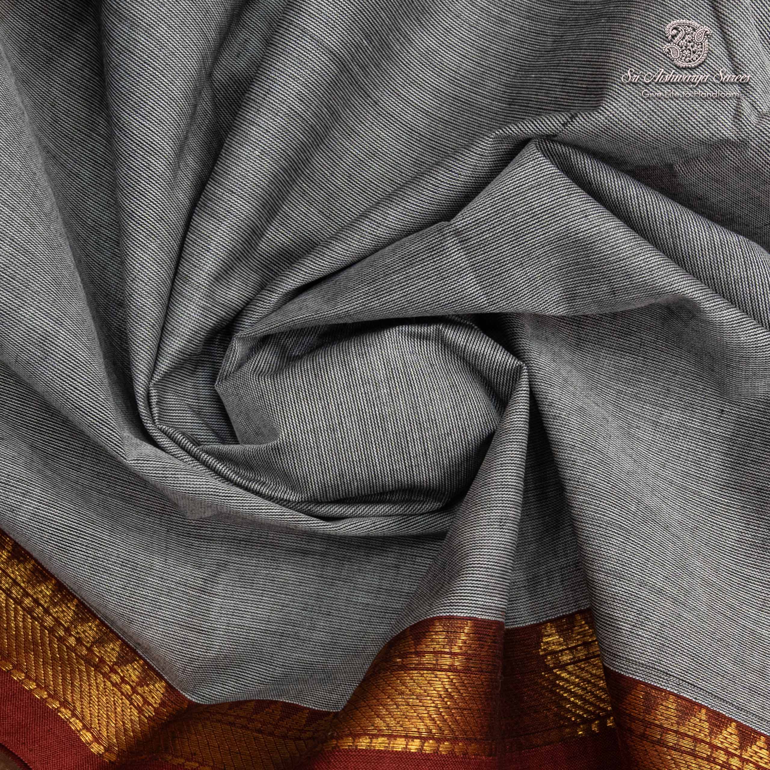 AÂ Light Grey cotton saree drapes with effortless grace, offering breathable comfort and a soft, natural texture against the skin. Its subtle weave and earthy elegance make it perfect for both everyday charm and special gatherings.