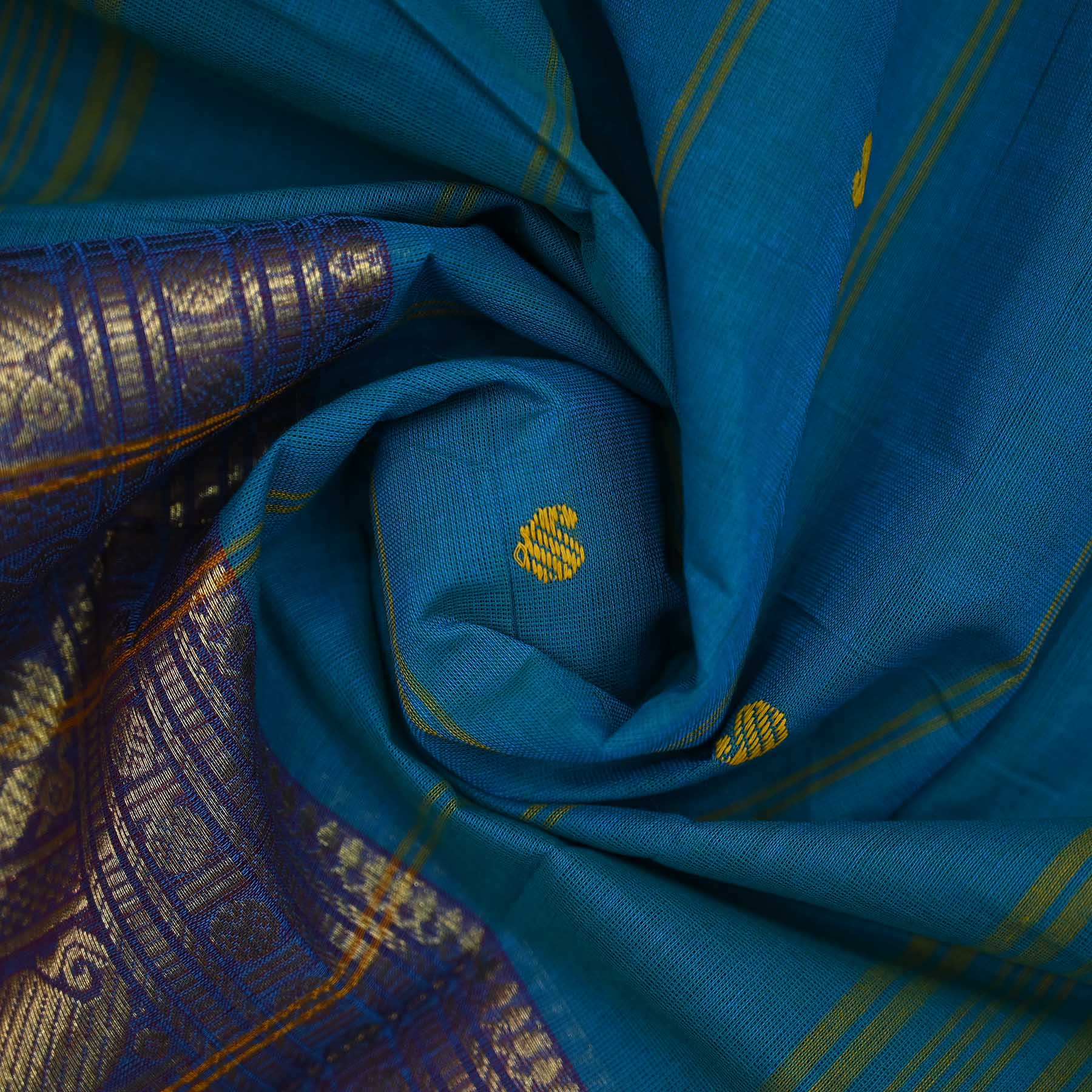 “Sky Blue Color fine cotton saree with a traditional border design and delicate small motifs woven all over the body — a graceful blend of heritage and everyday charm.”