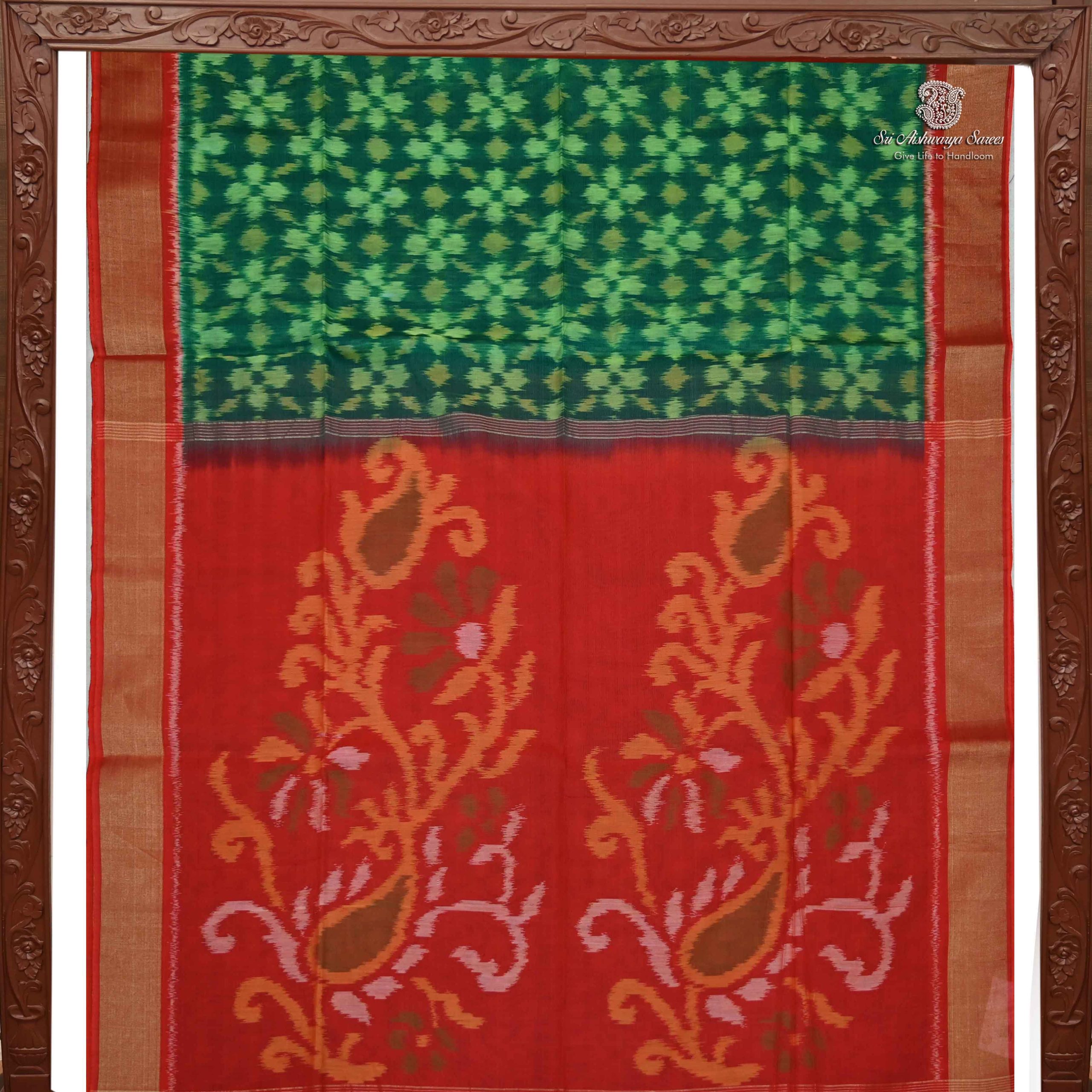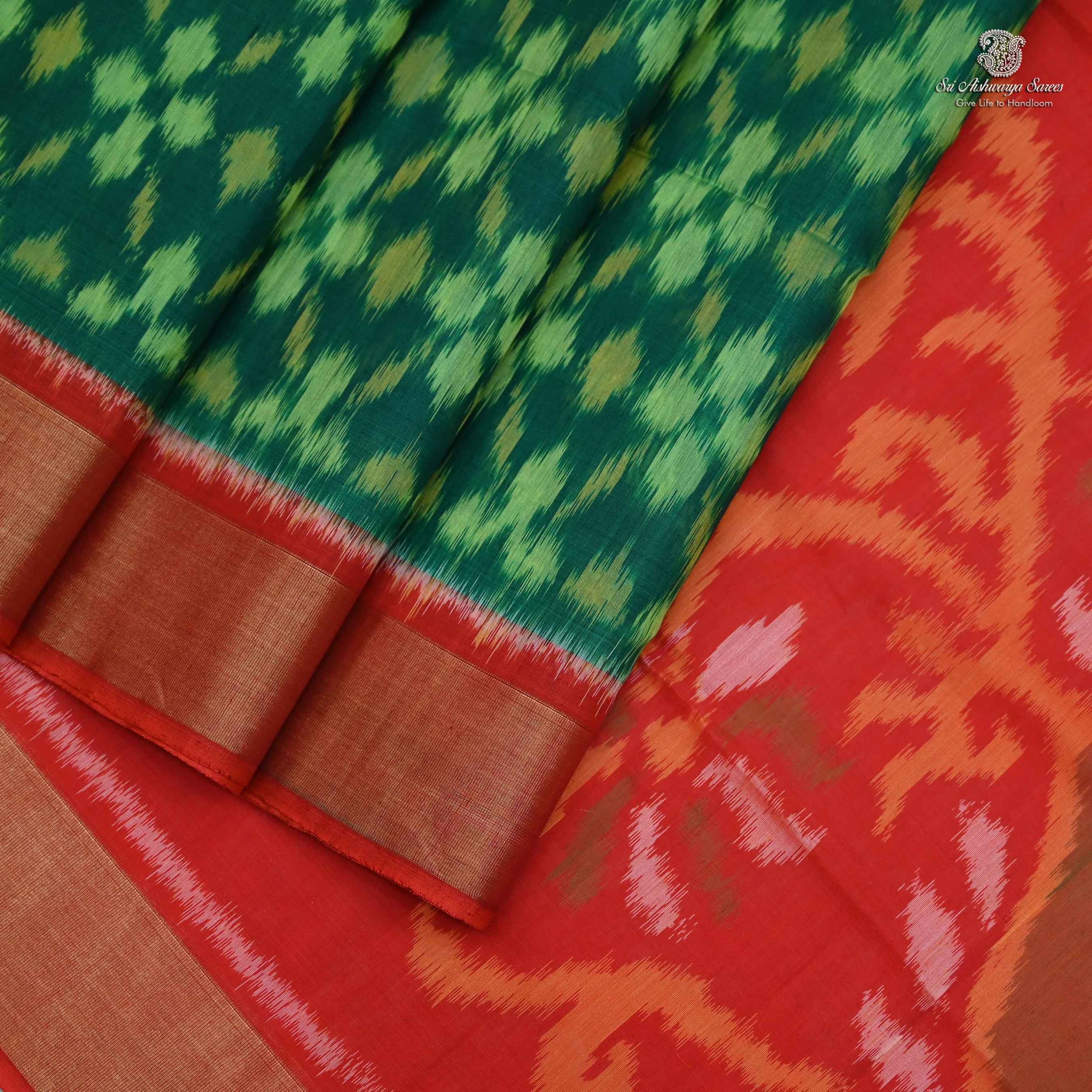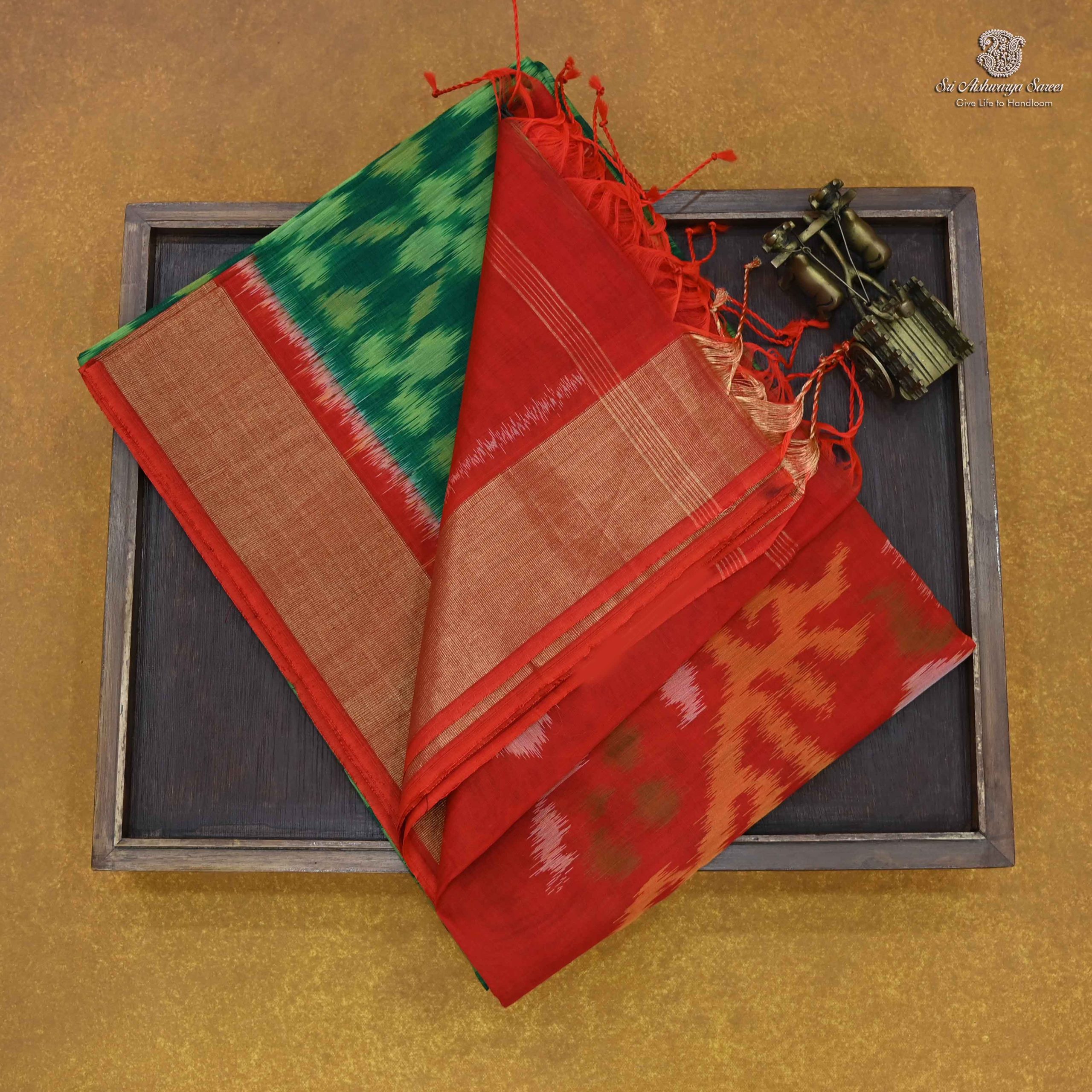 Kora Silk Cotton Sarees – Dark Green SAS34659