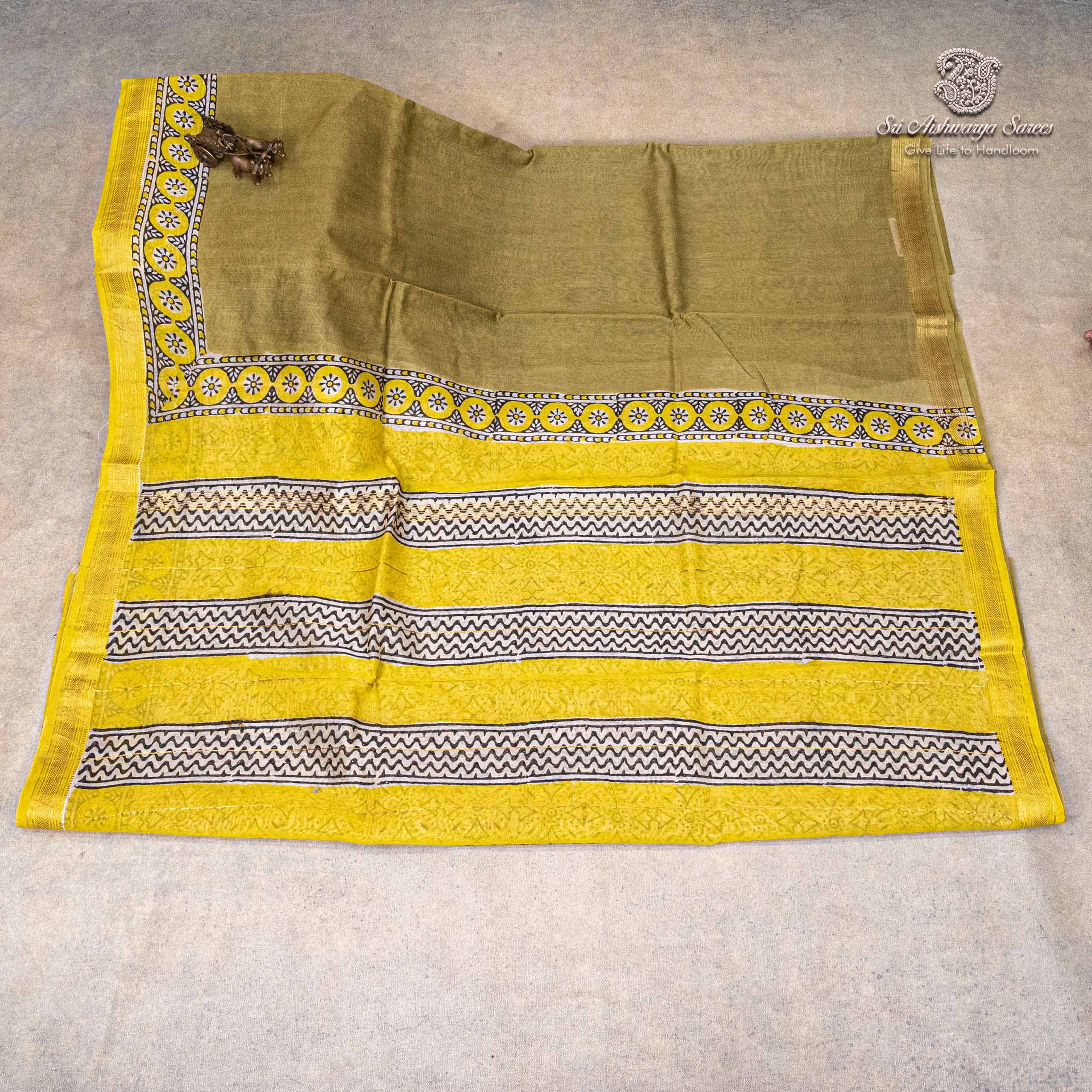 Pure Maheshwari Silk Sarees – Light Olive Green SASMS36198