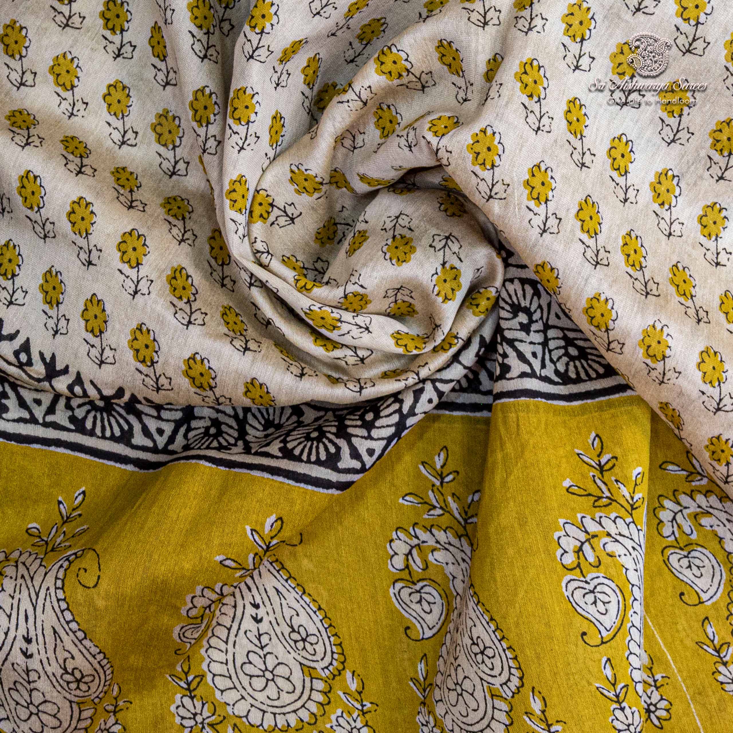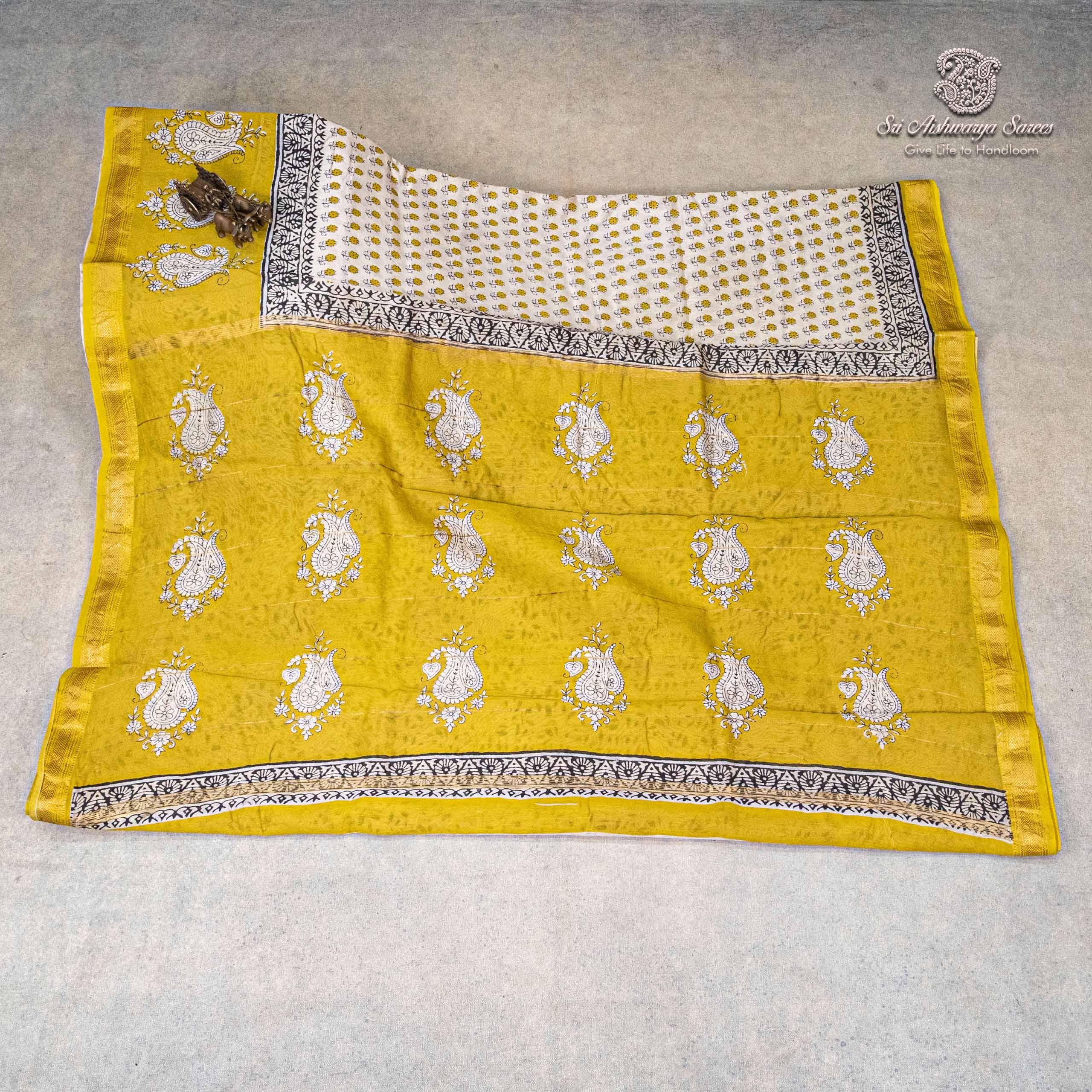 Pure Maheshwari Silk Sarees – Light Yellow SASMS36190
