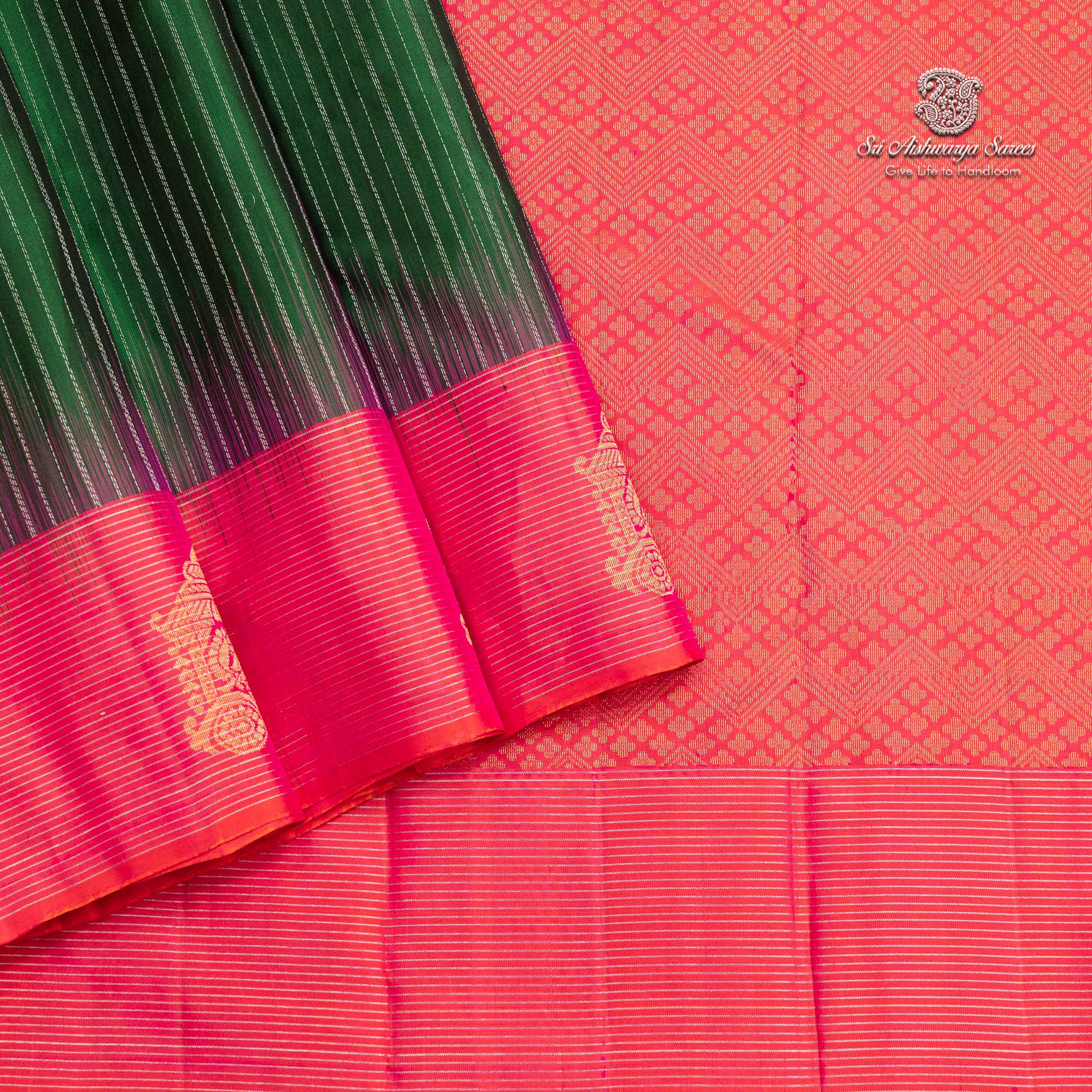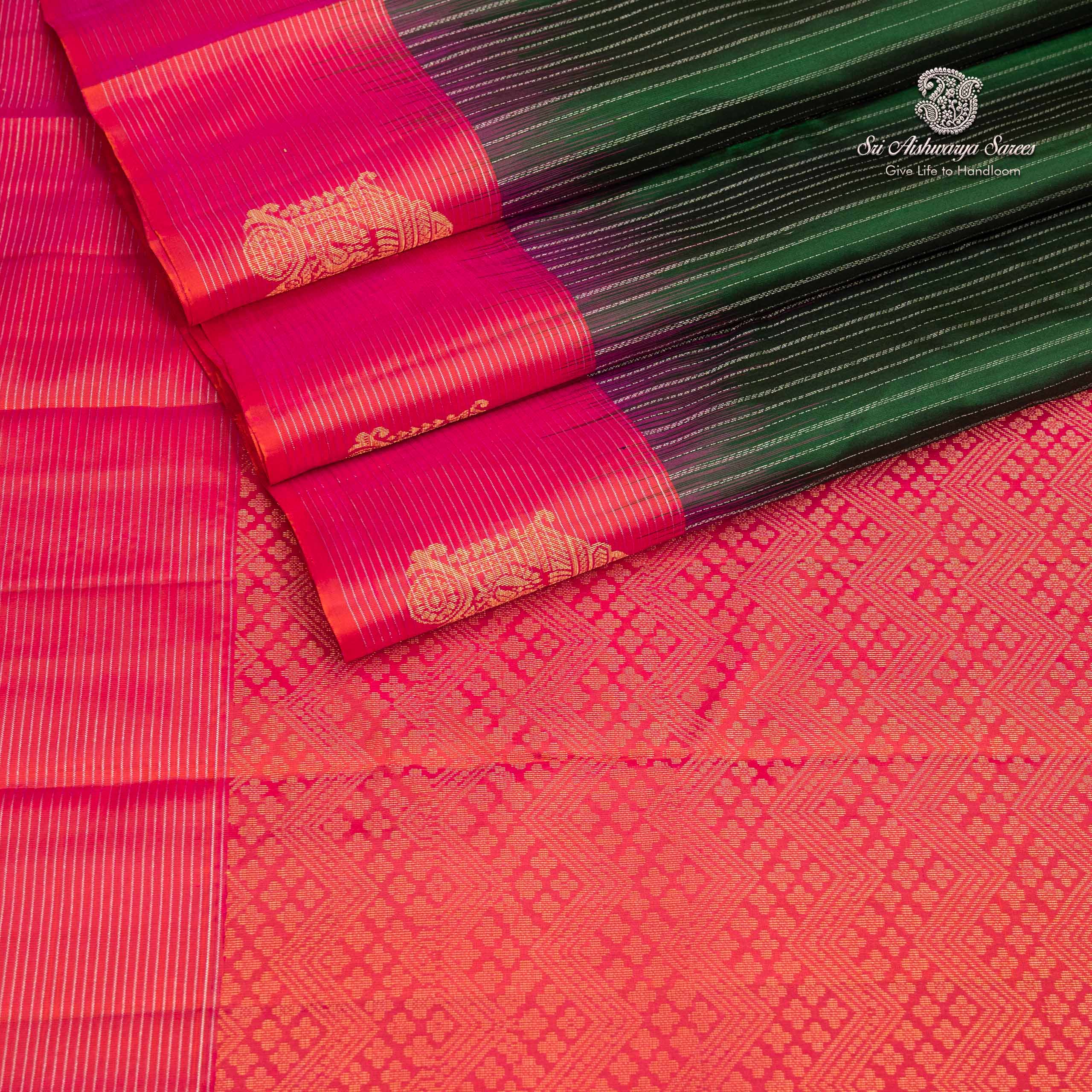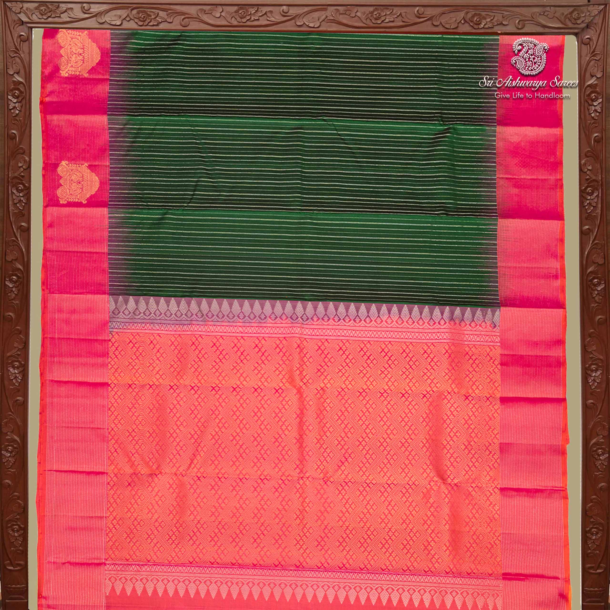 • A rich dark green pure silk saree that radiates depth and classic elegance.