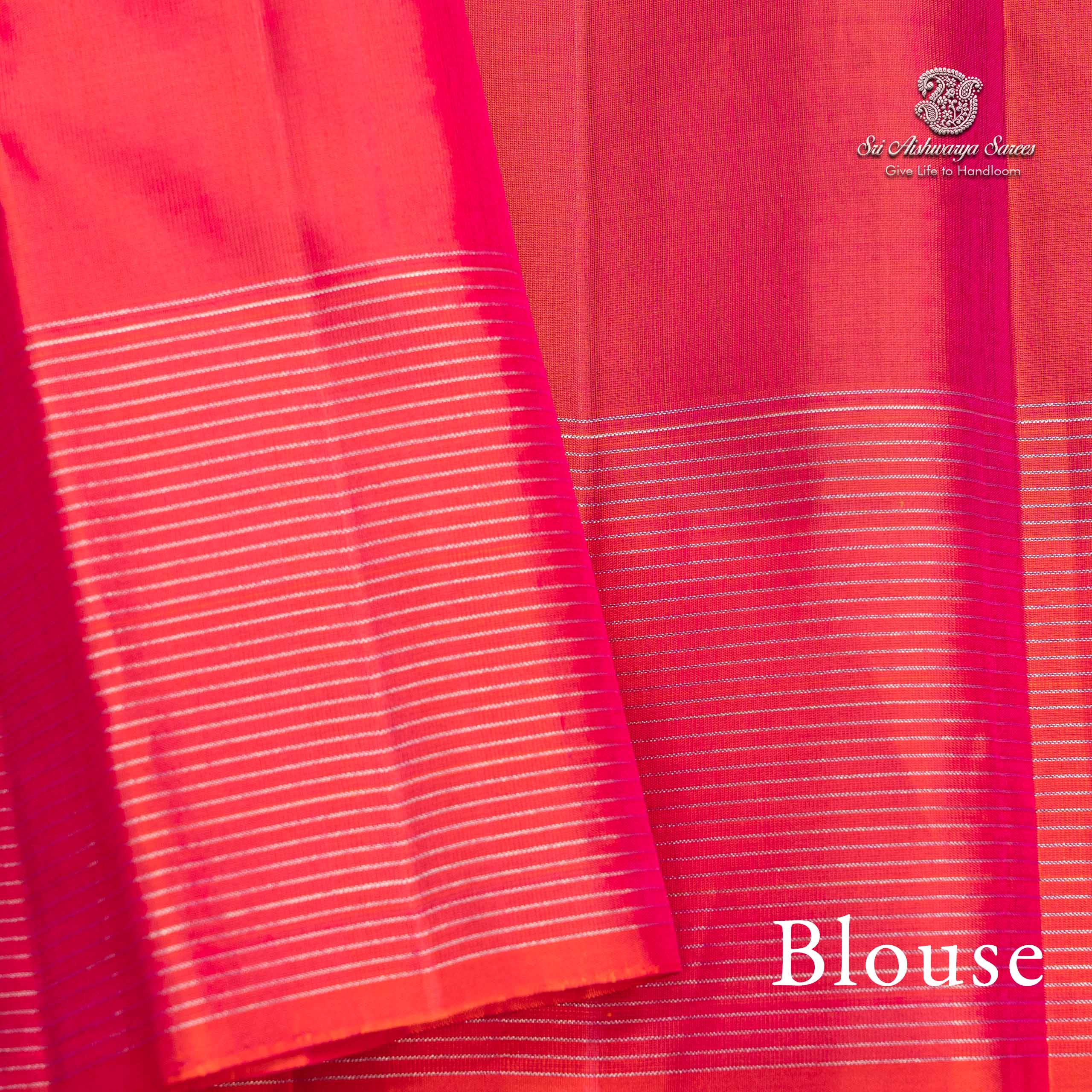 Paired with a vibrant orangish pink color blouse, it creates a bold, festive contrast that is both striking and graceful.