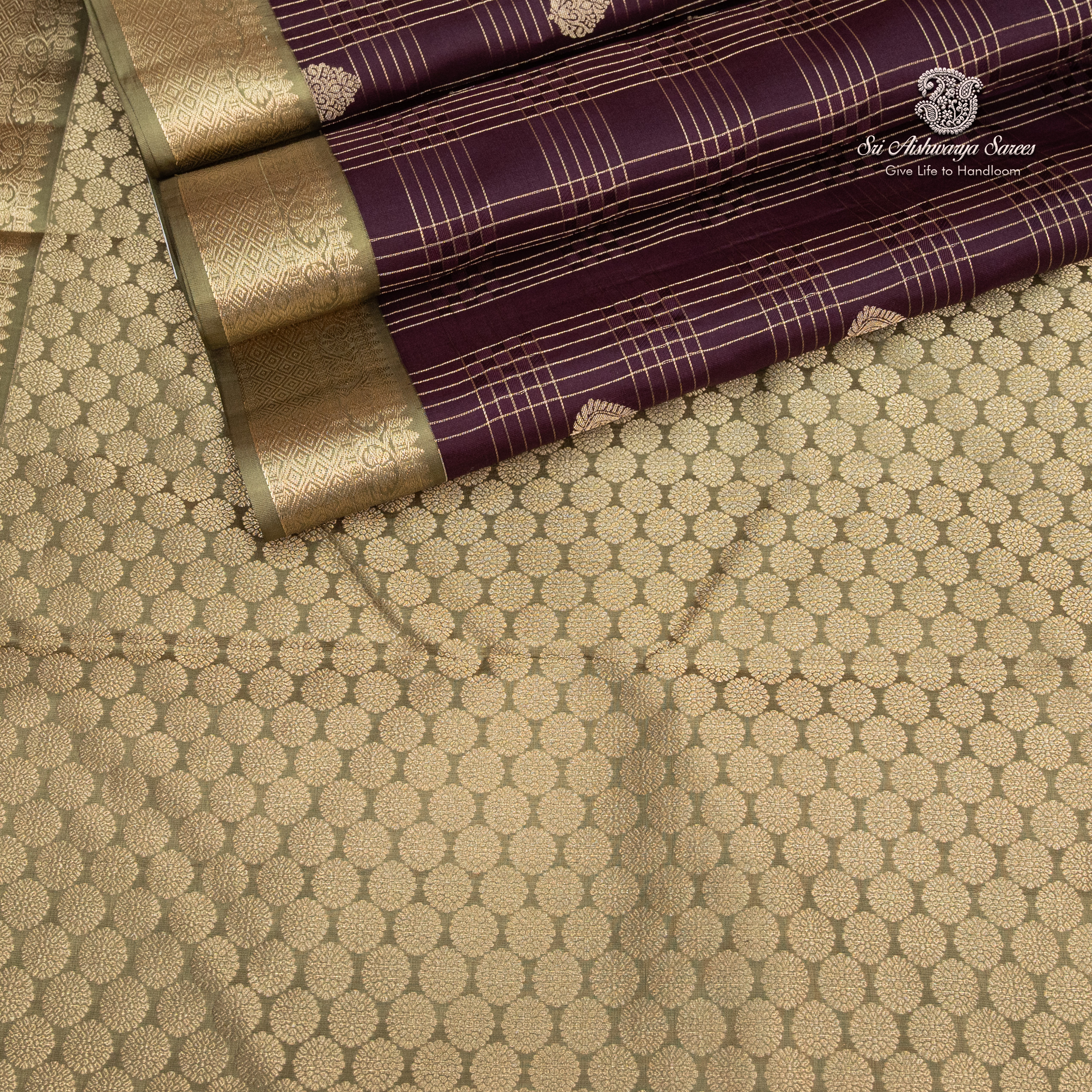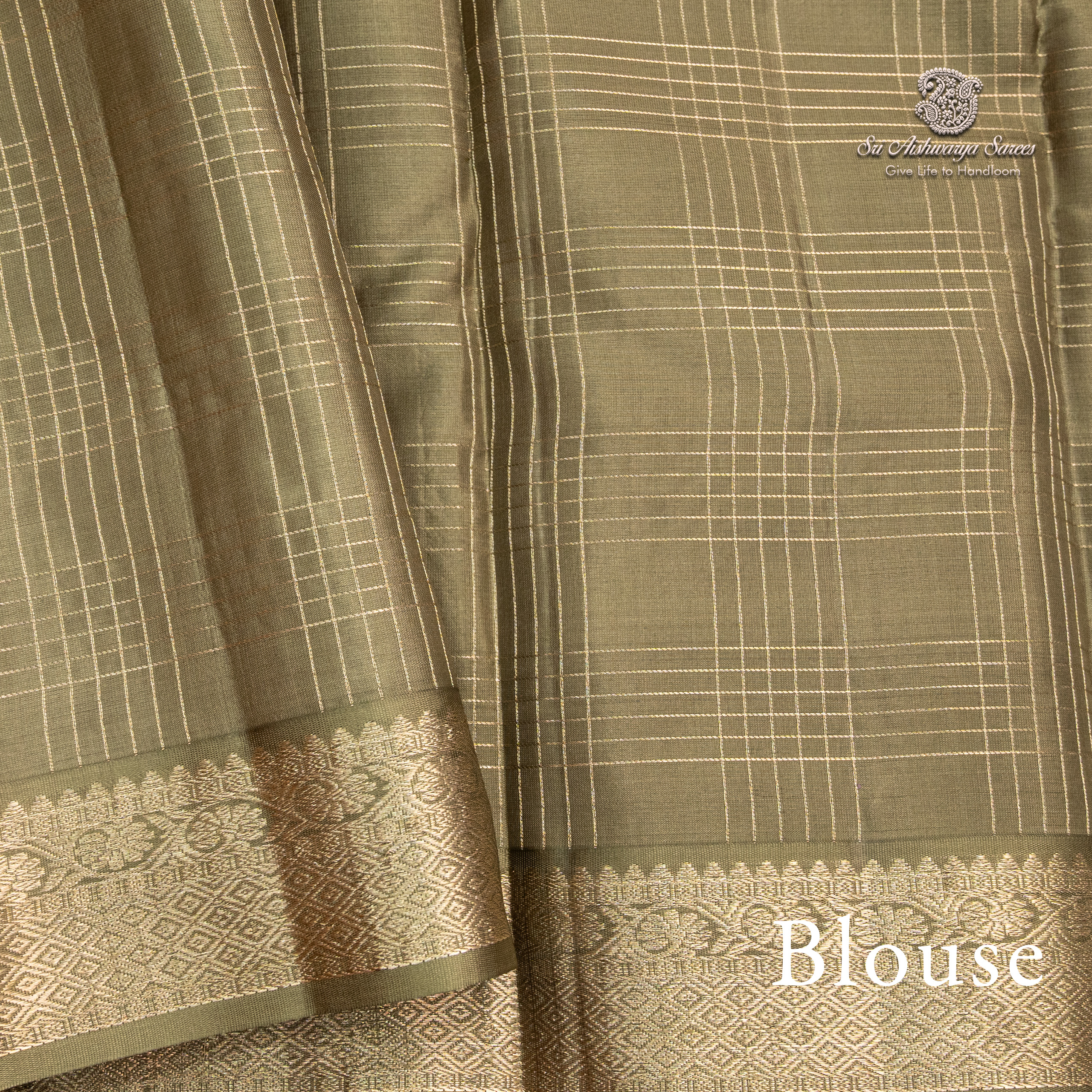 • A refined gondola-hued pure silk saree with all over body zari kattam that carries a deep, smoky elegance with modern sophistication. Paired with a graceful green smoke color blouse, it creates a muted yet striking harmony of rich, earthy tones.