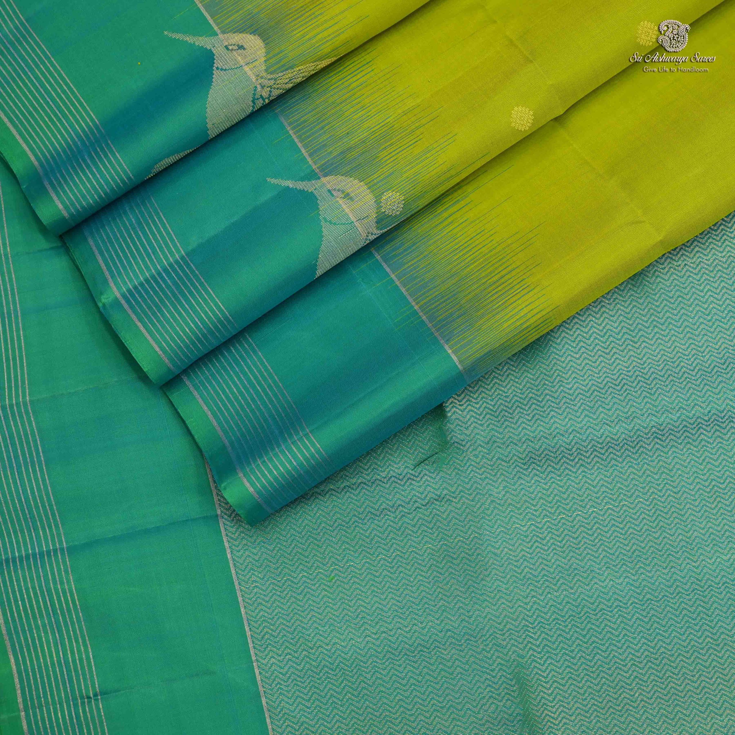 Step into a world of elegance with our Sambangi Green Pure Silk Saree, a drape that beautifully blends tradition and luxury, crafted by skilled artisans. This saree is woven from the finest quality silk, and moreover, its Silk Mark certification guarantees authenticity and purity.