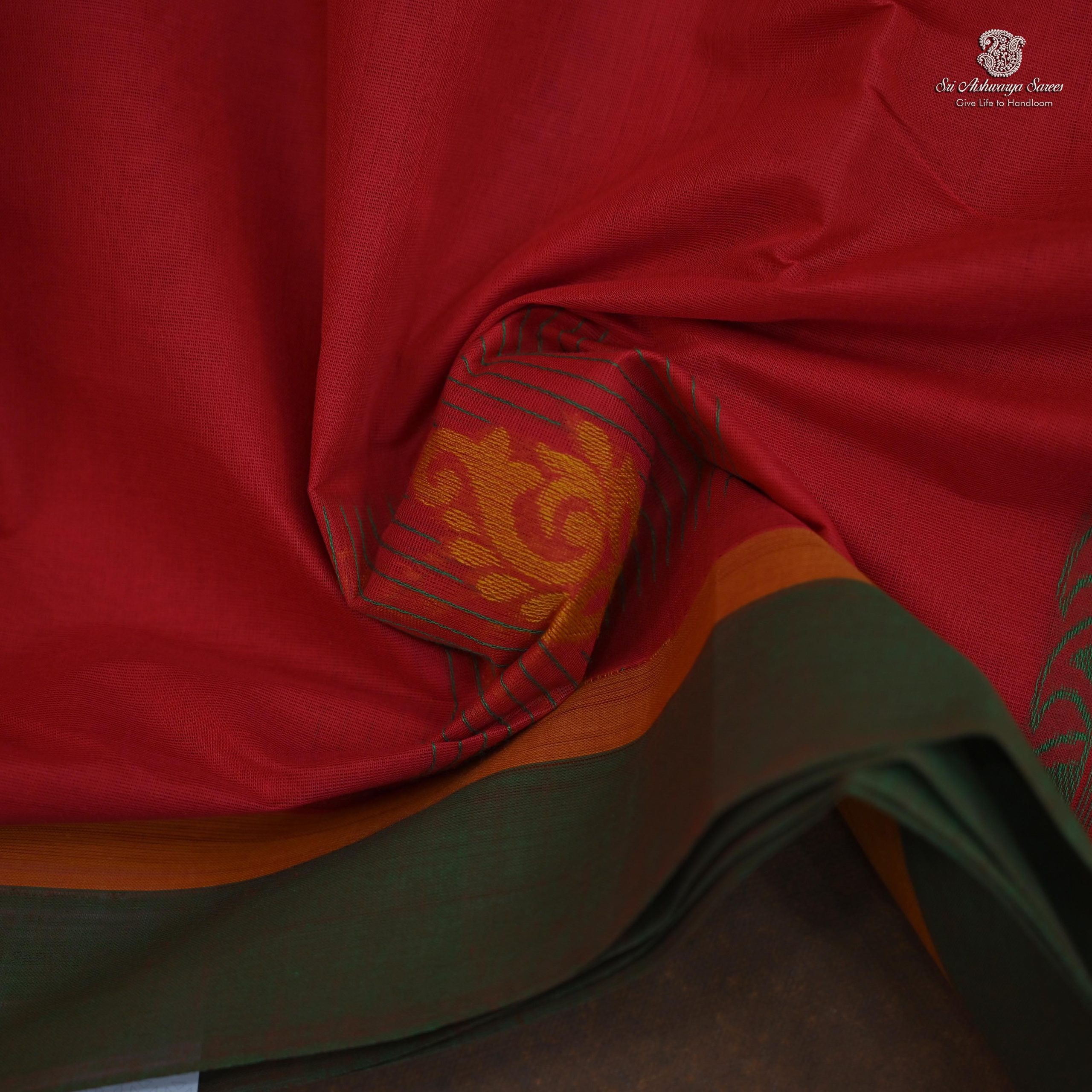 Rich Cotton Saree – Bright Red SASC34787