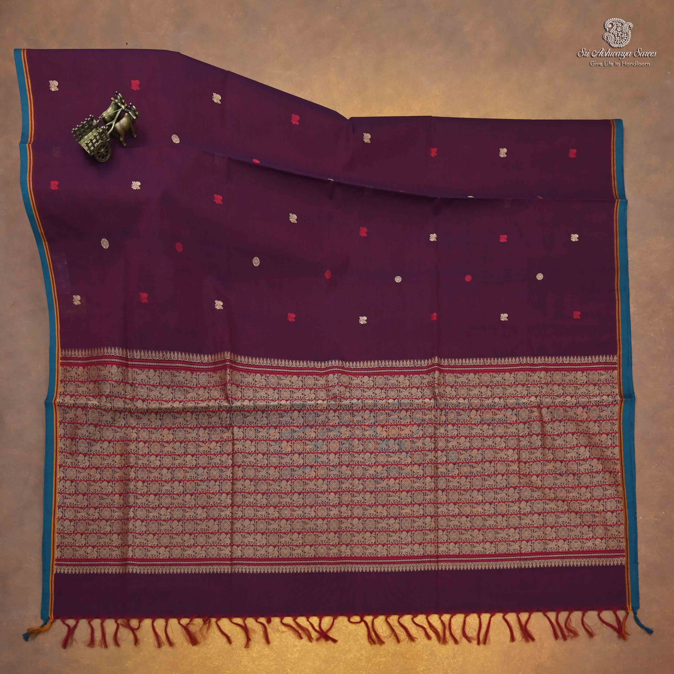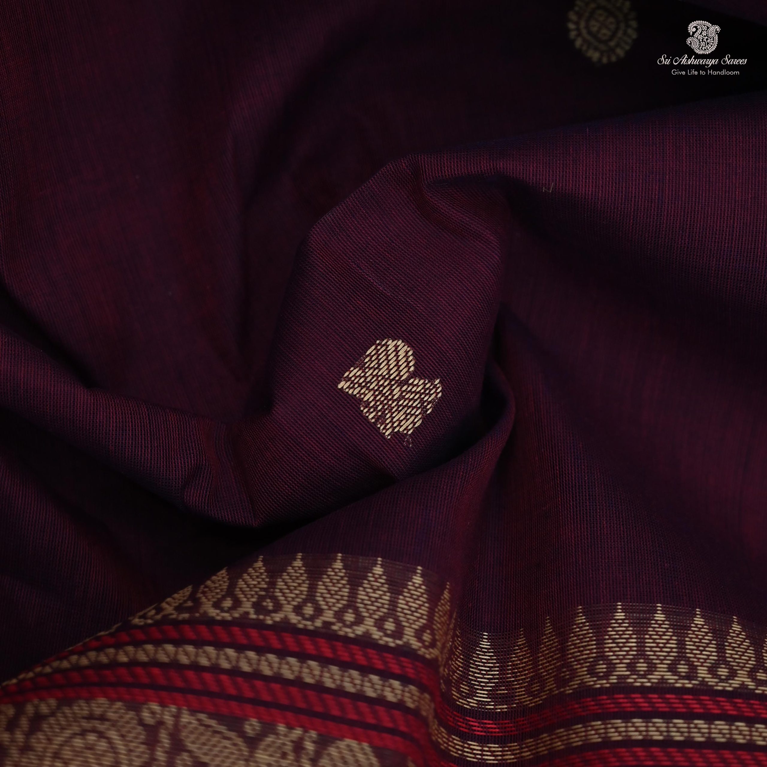 Rich Cotton Saree – Dark Maroon SASC35007
