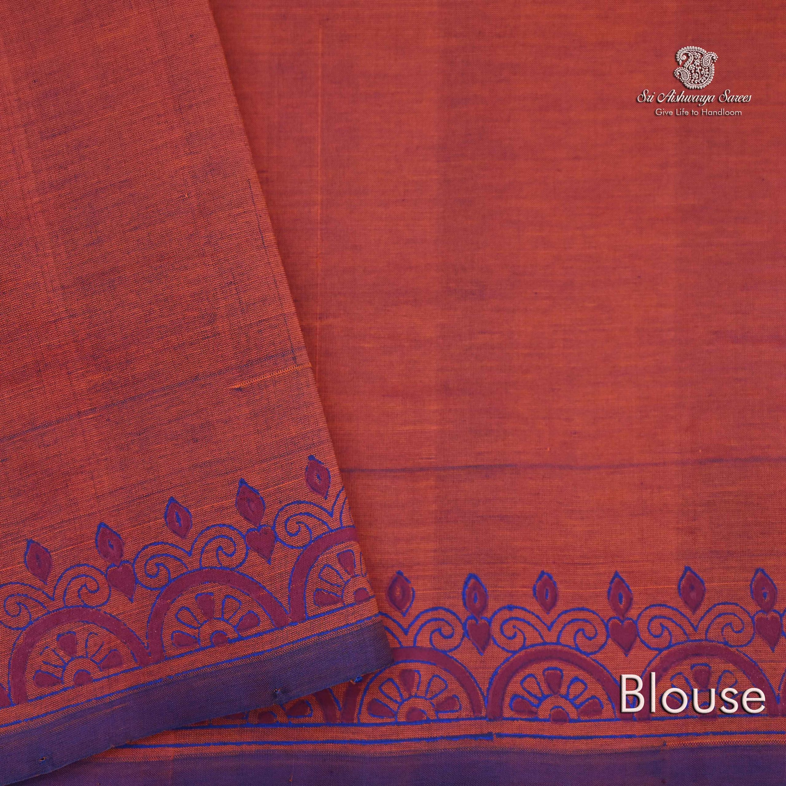 Elegant semi-silk saree featuring a Halloween Orange body and rich pallu, adorned with traditional hand block-printed peacock design.