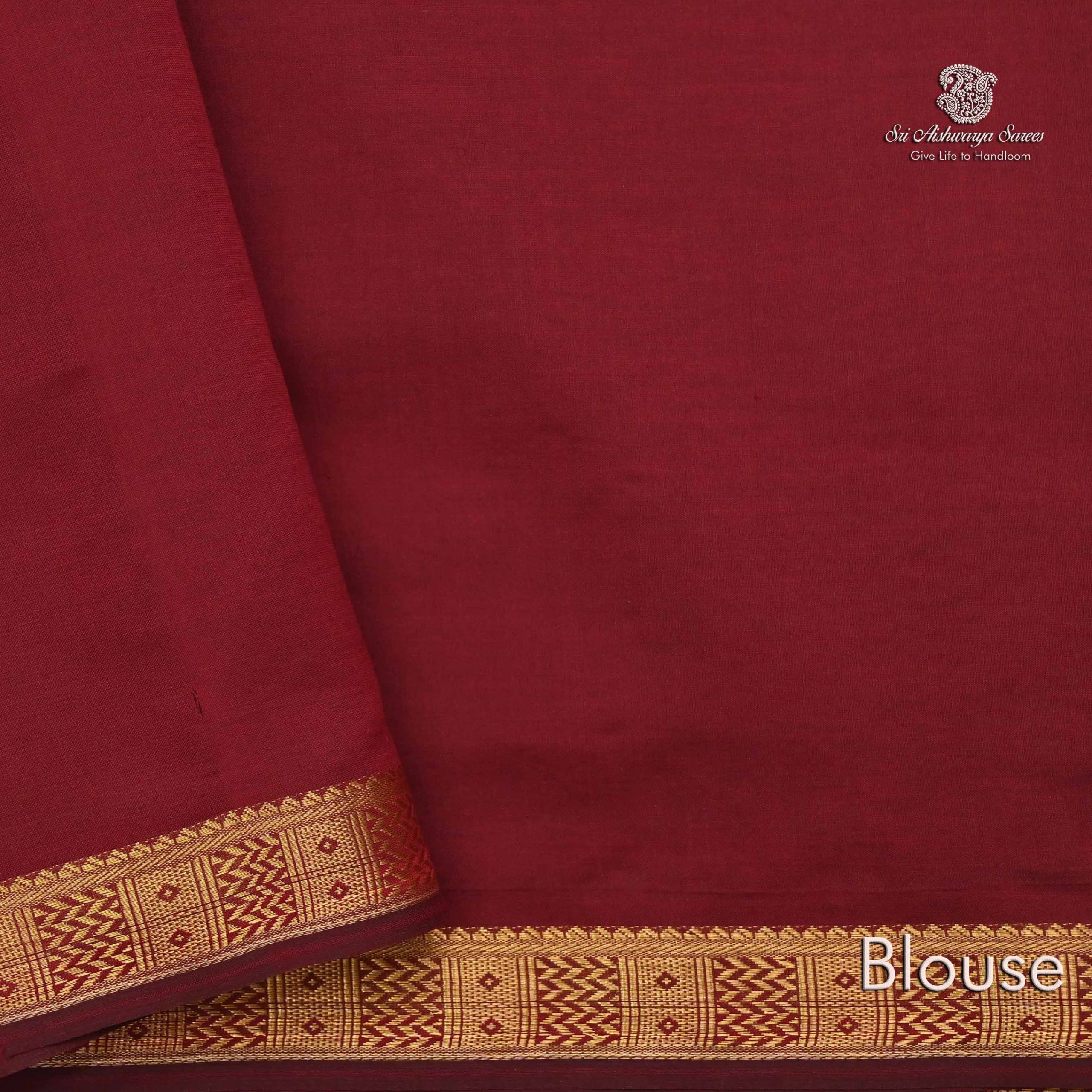 This semi silk cotton saree features a smooth texture with a subtle sheen and comes with a matching blouse piece, ready for your personal touch. The elegant weaving and rich hue make it a standout choice for festivals, functions, or as a thoughtful gift.