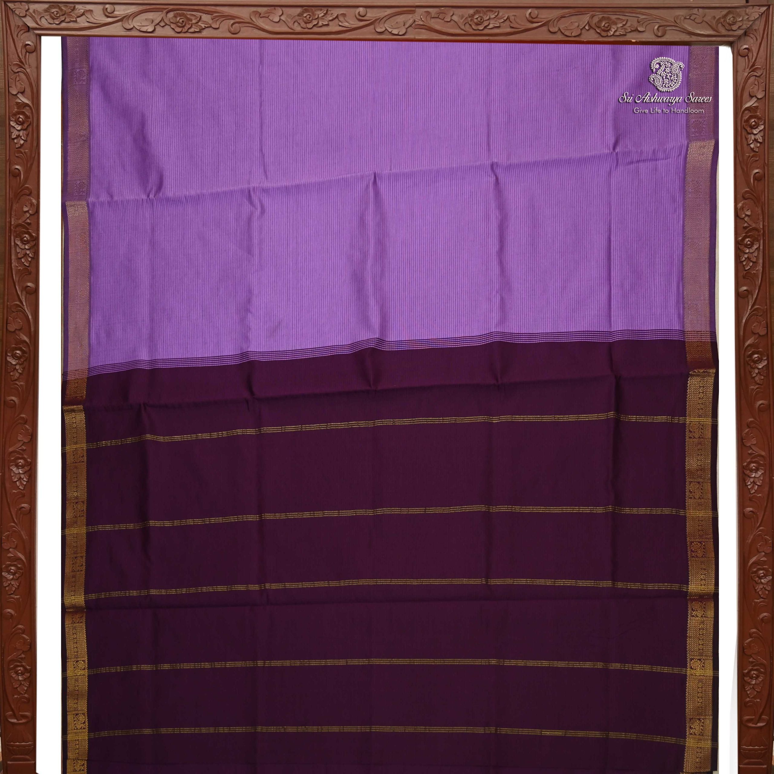 Vibrant semi silk cotton saree in Dark Lilac with purple burgundy pallu, ideal for a bold and elegant traditional look.