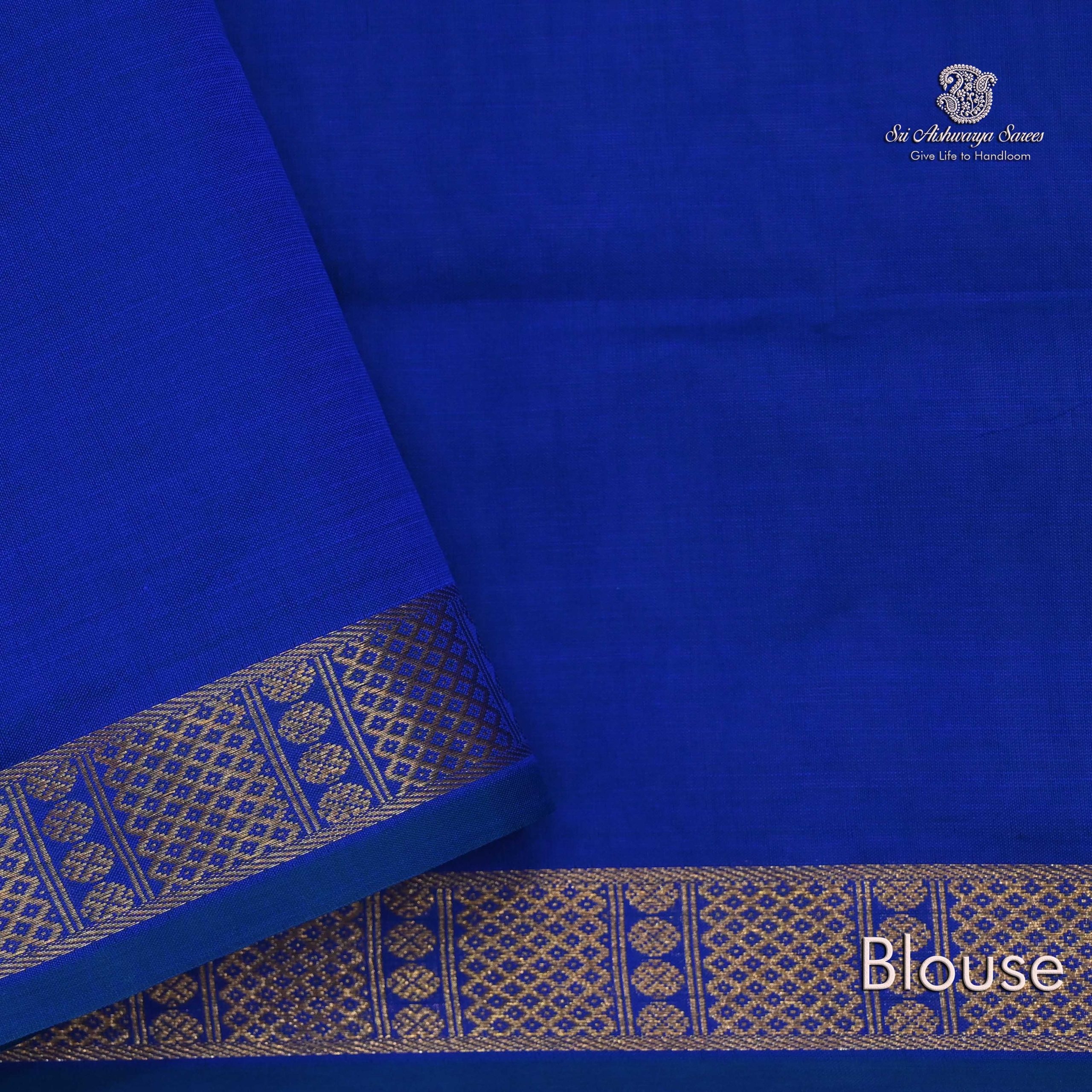 This semi silk cotton saree features a smooth texture with a subtle sheen and comes with a matching blouse piece, ready for your personal touch. The elegant weaving and rich hue make it a standout choice for festivals, functions, or as a thoughtful gift.