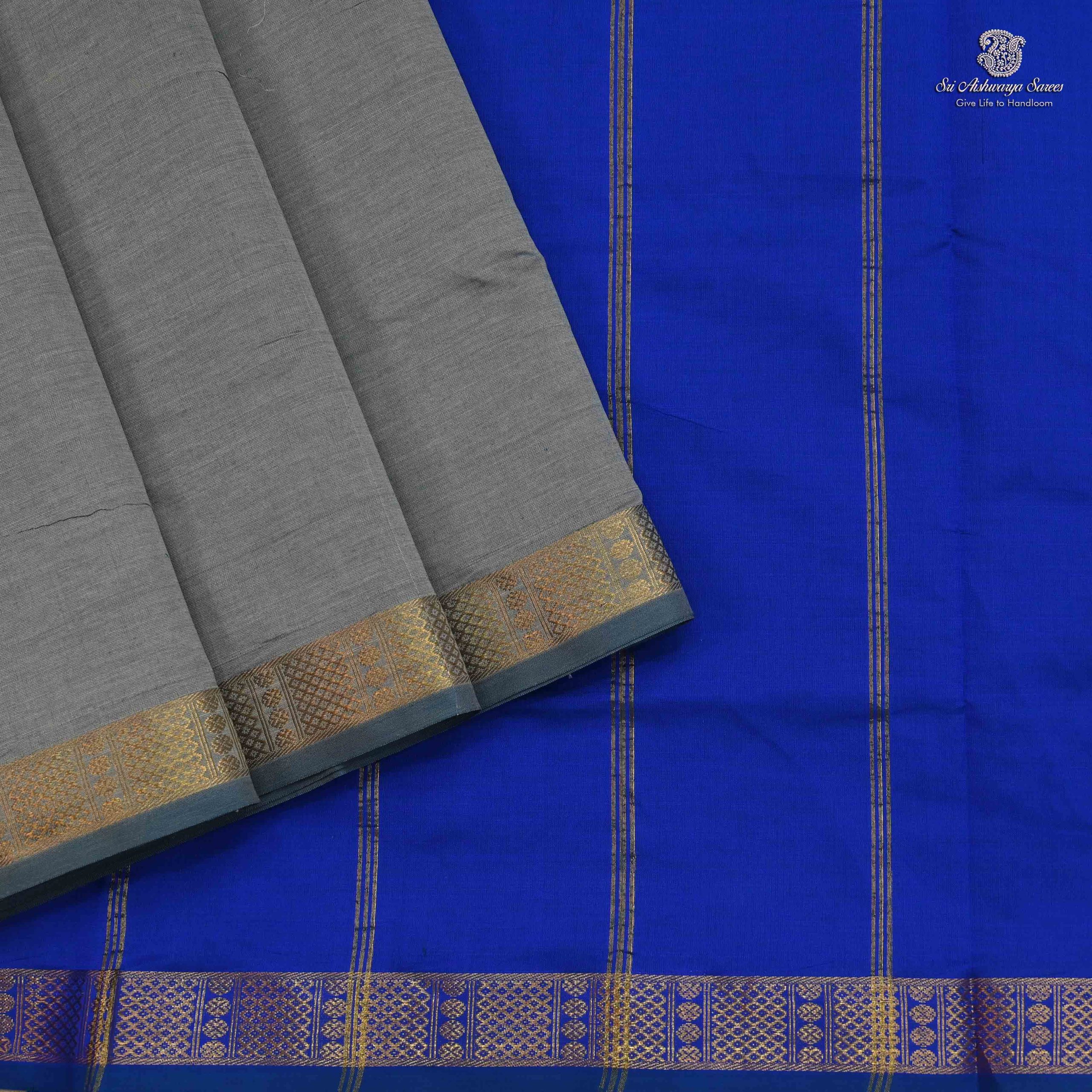 Vibrant semi silk cotton saree in Grey with Ink Blue pallu, ideal for a bold and elegant traditional look.