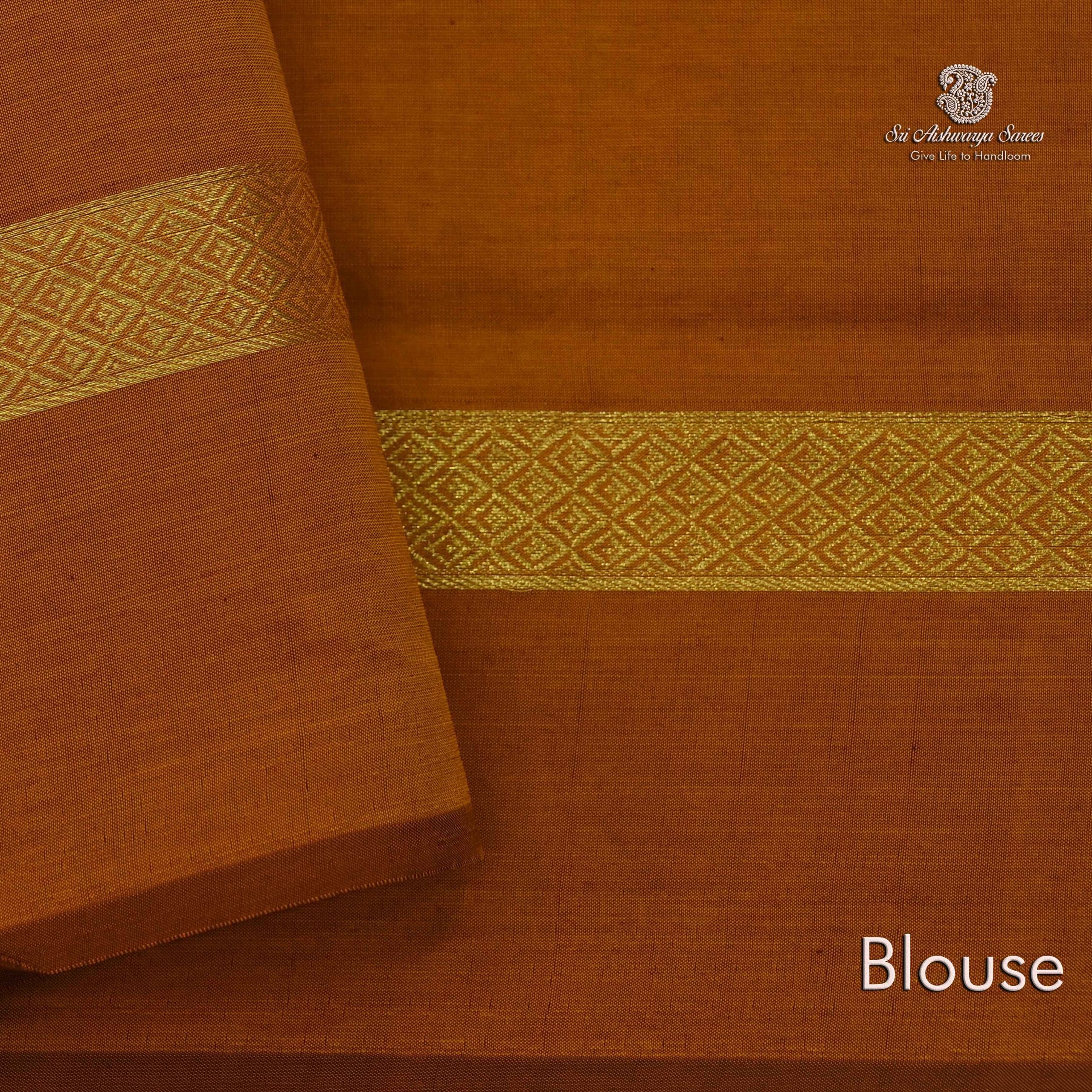 This semi silk cotton saree features a smooth texture with a subtle sheen and comes with a matching blouse piece, ready for your personal touch. The elegant weaving and rich hue make it a standout choice for festivals, functions, or as a thoughtful gift.