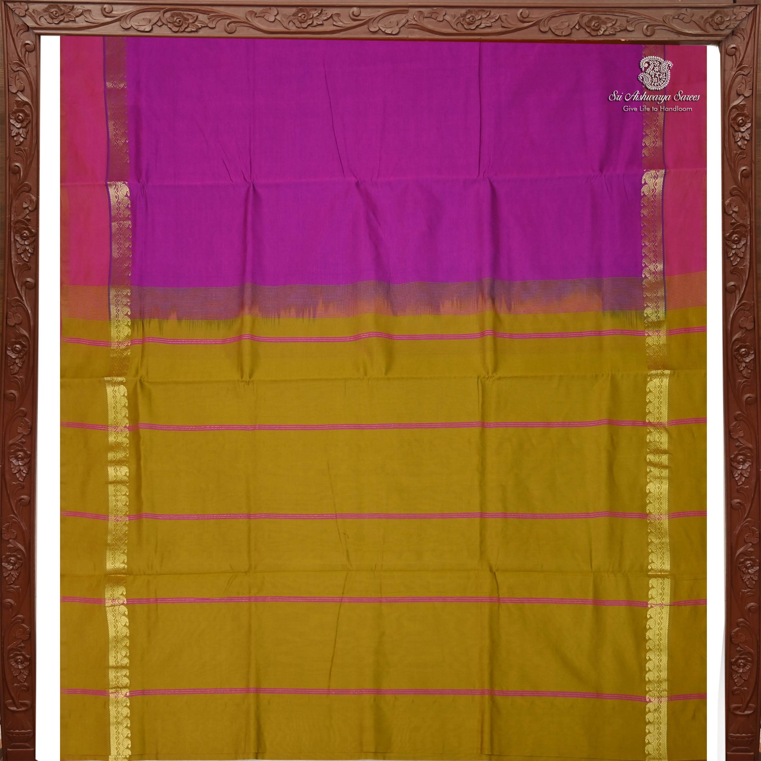 Shop this elegant semi silk cotton saree featuring a Mehndi Green body with a rich mehndi green pallu—perfect for festive and traditional occasions.