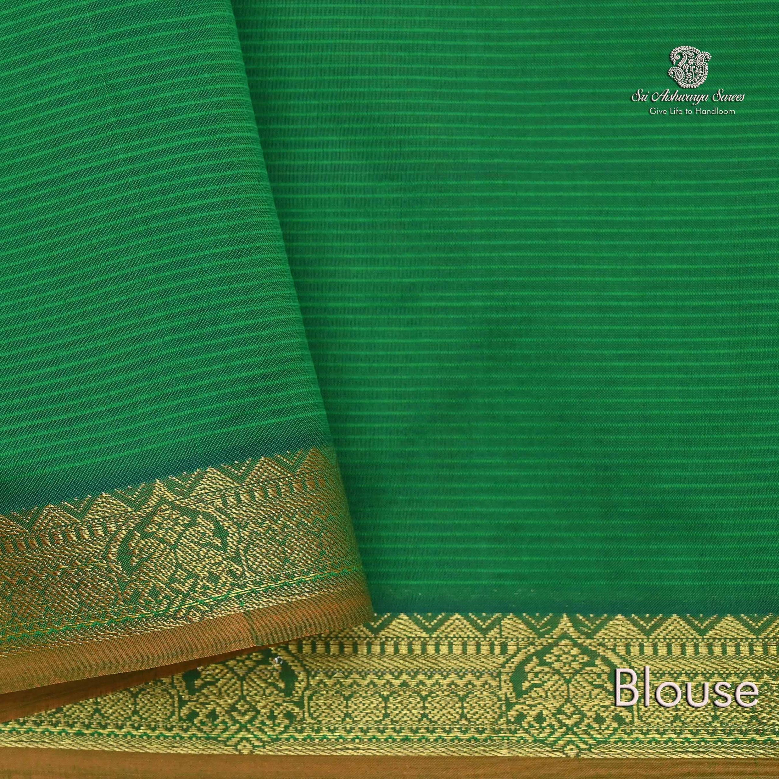 This semi silk cotton saree features a smooth texture with a subtle sheen and comes with a matching blouse piece, ready for your personal touch. The elegant weaving and rich hue make it a standout choice for festivals, functions, or as a thoughtful gift.
