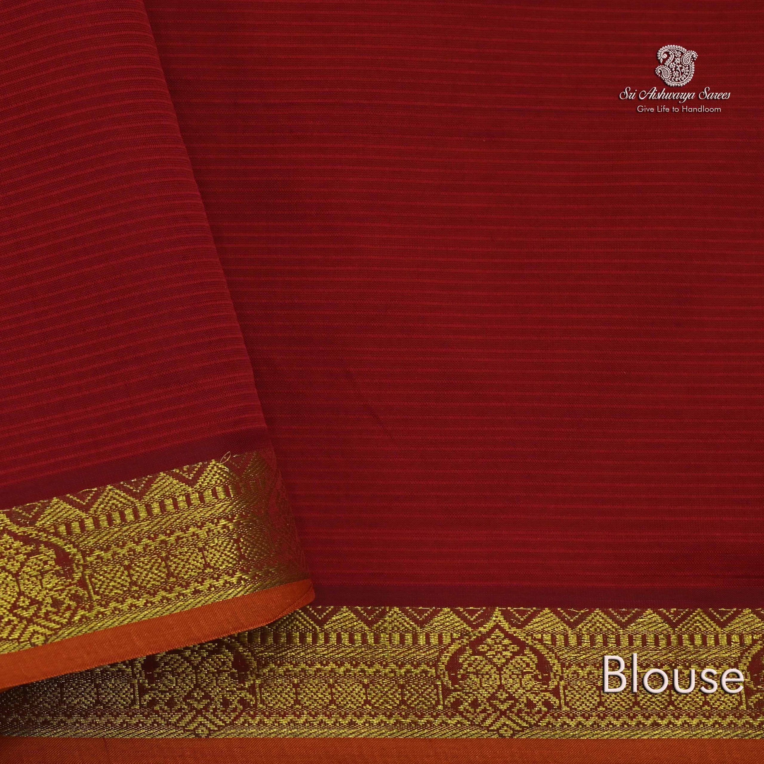 This semi silk cotton saree features a smooth texture with a subtle sheen and comes with a matching blouse piece, ready for your personal touch. The elegant weaving and rich hue make it a standout choice for festivals, functions, or as a thoughtful gift.