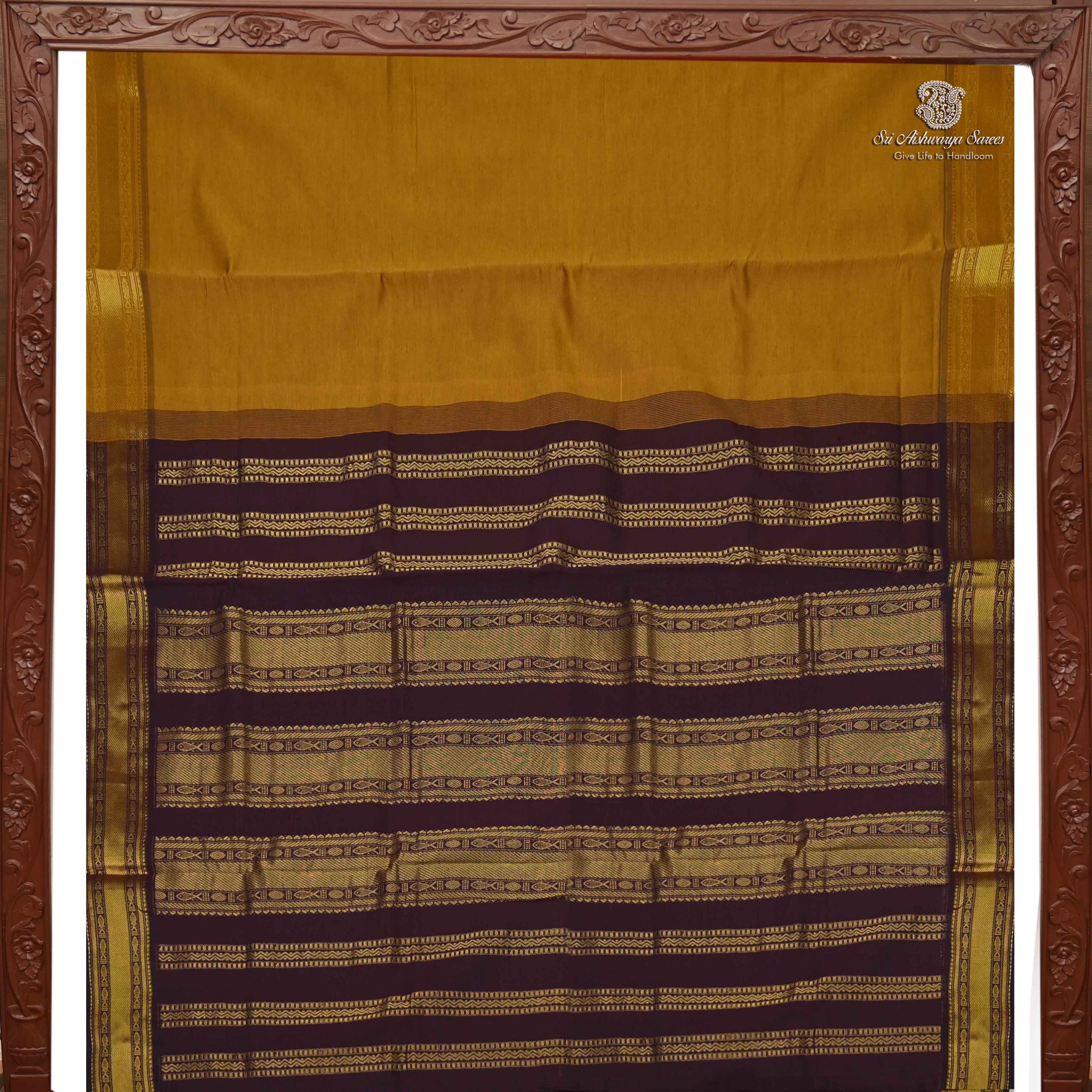 Shop this elegant semi silk cotton saree featuring a Mustard Yellow body with a rich self design pallu—perfect for festive and traditional occasions.