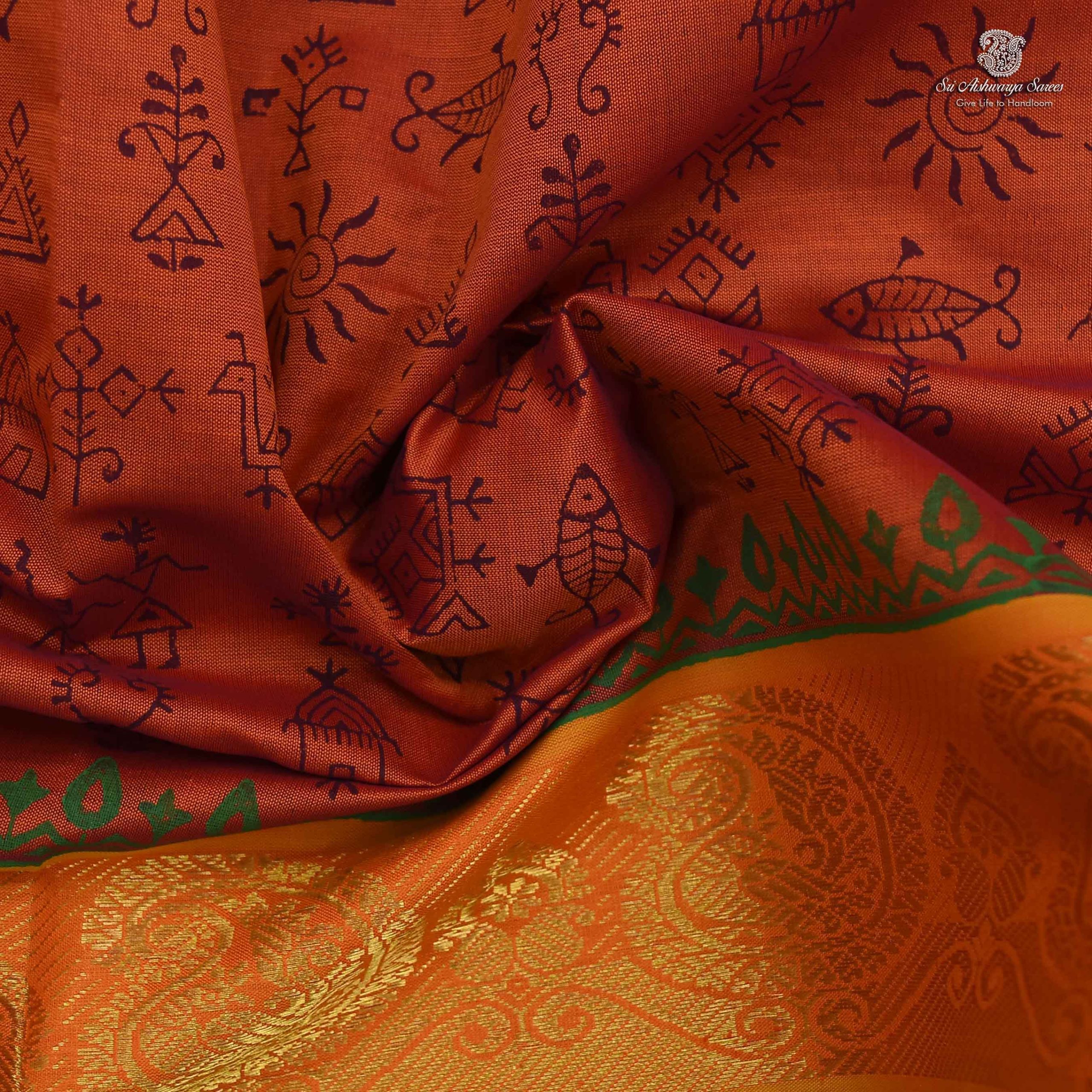 Semi Silk Cotton Printed Sarees – Rust Orange