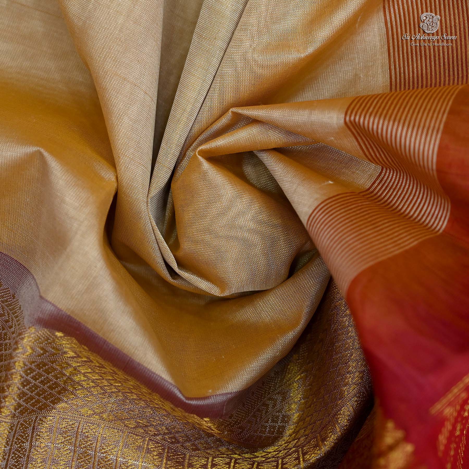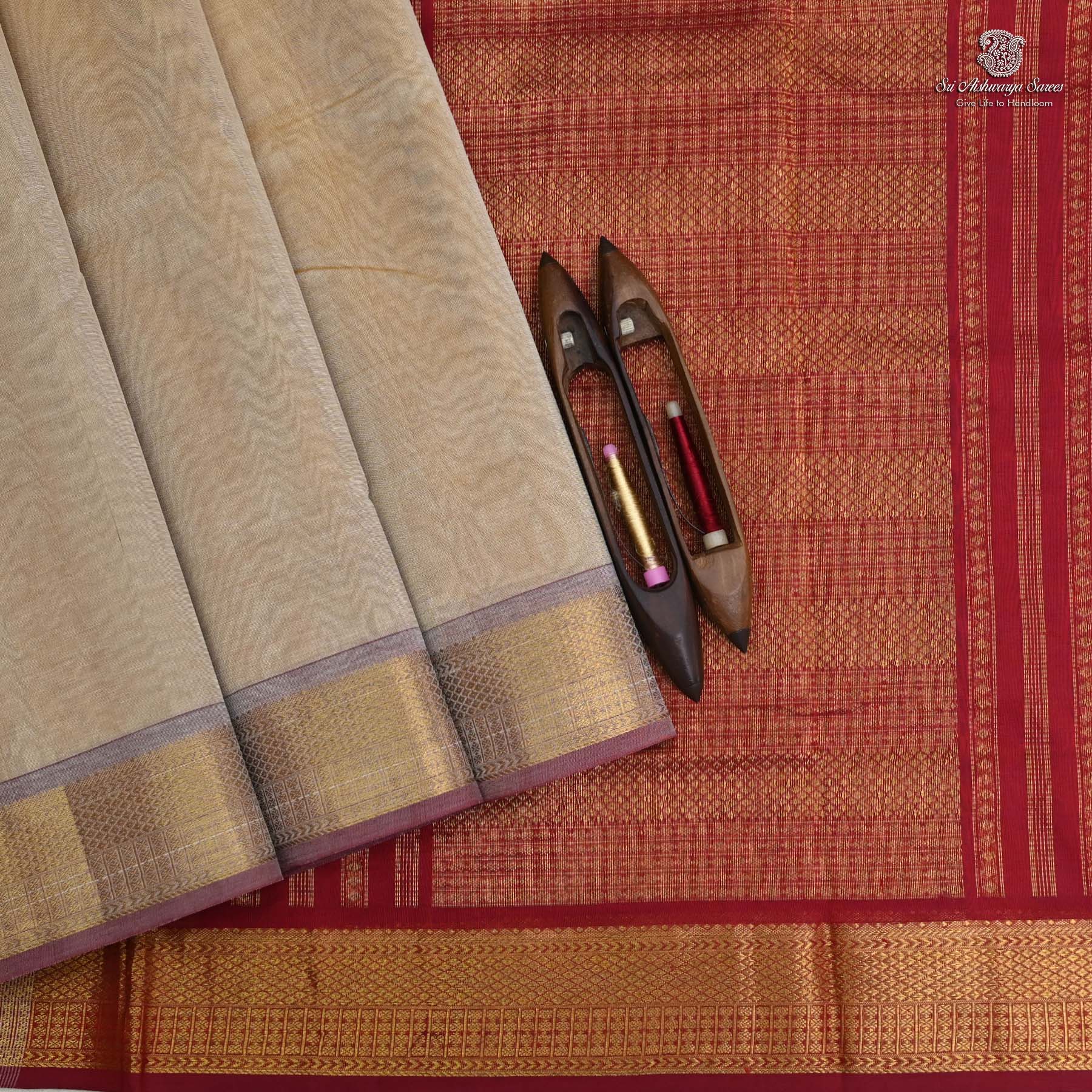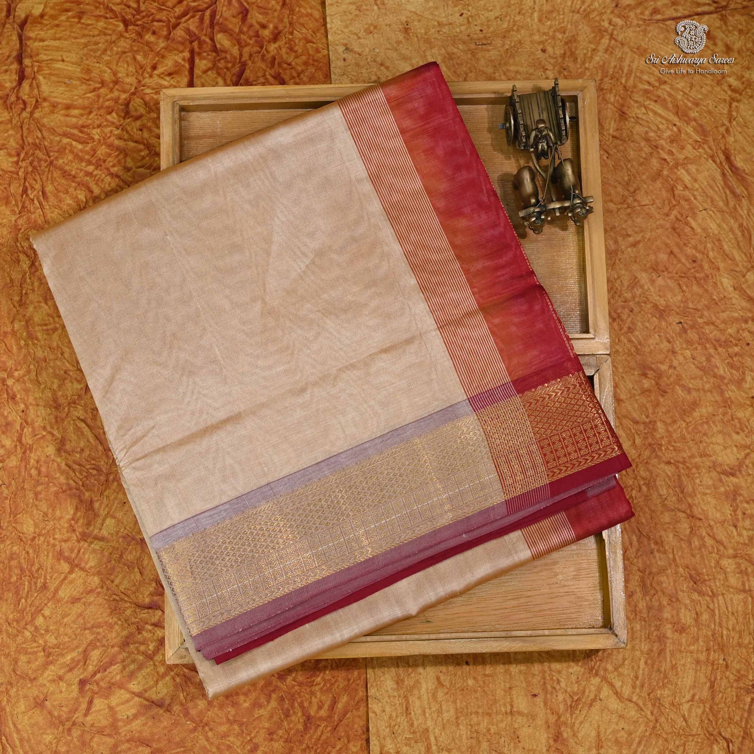Pure silk cotton saree with a Beige body and rich dark maroon pallu. A graceful handloom piece blending timeless tradition with elegant charm.