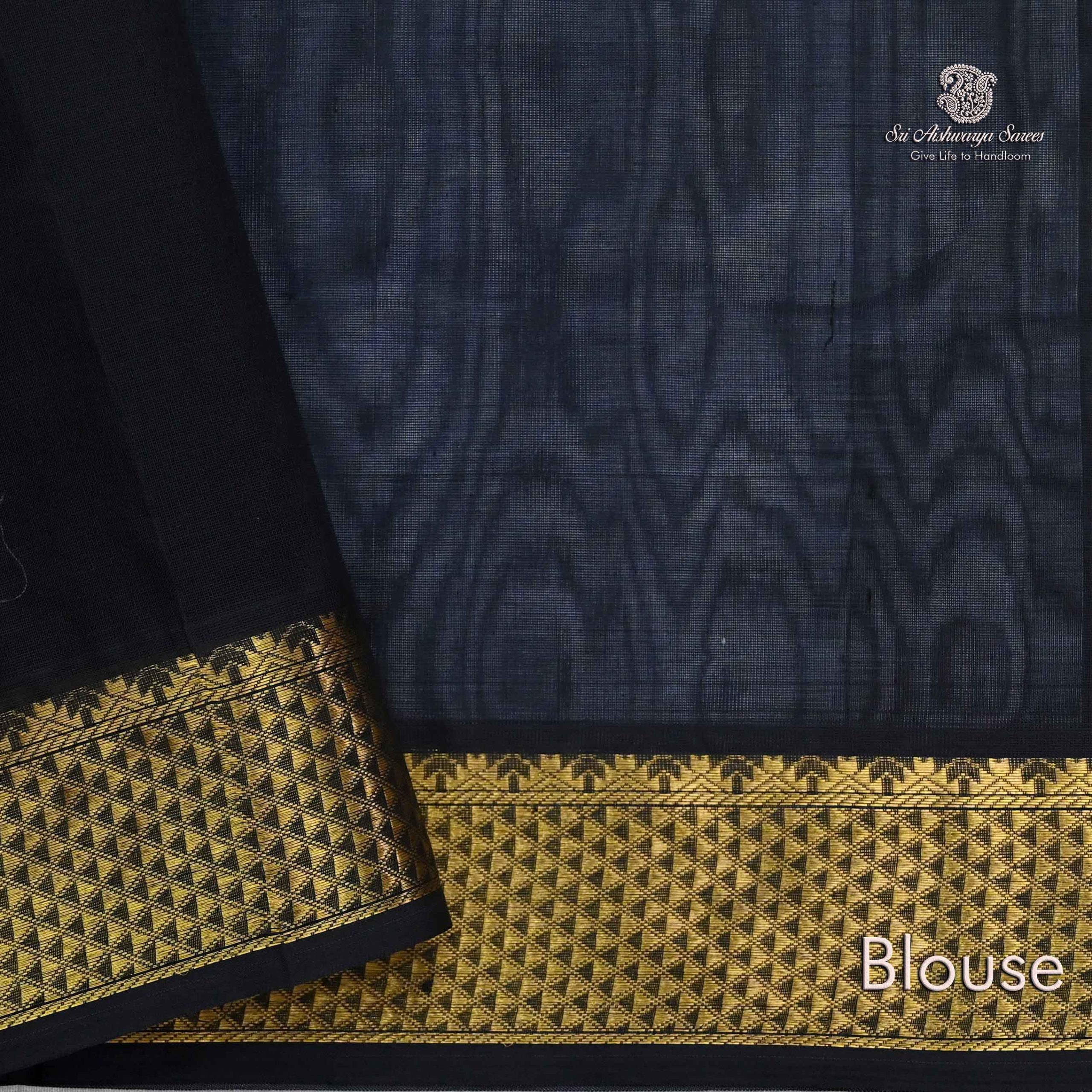 Pure silk cotton saree with a Gray body and rich black pallu. A graceful handloom piece blending timeless tradition with elegant charm.