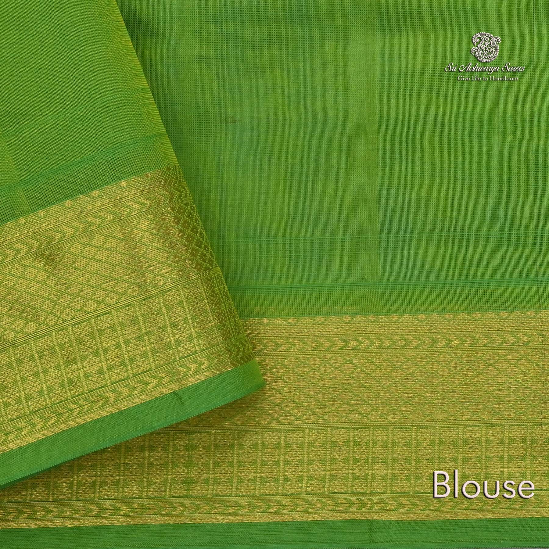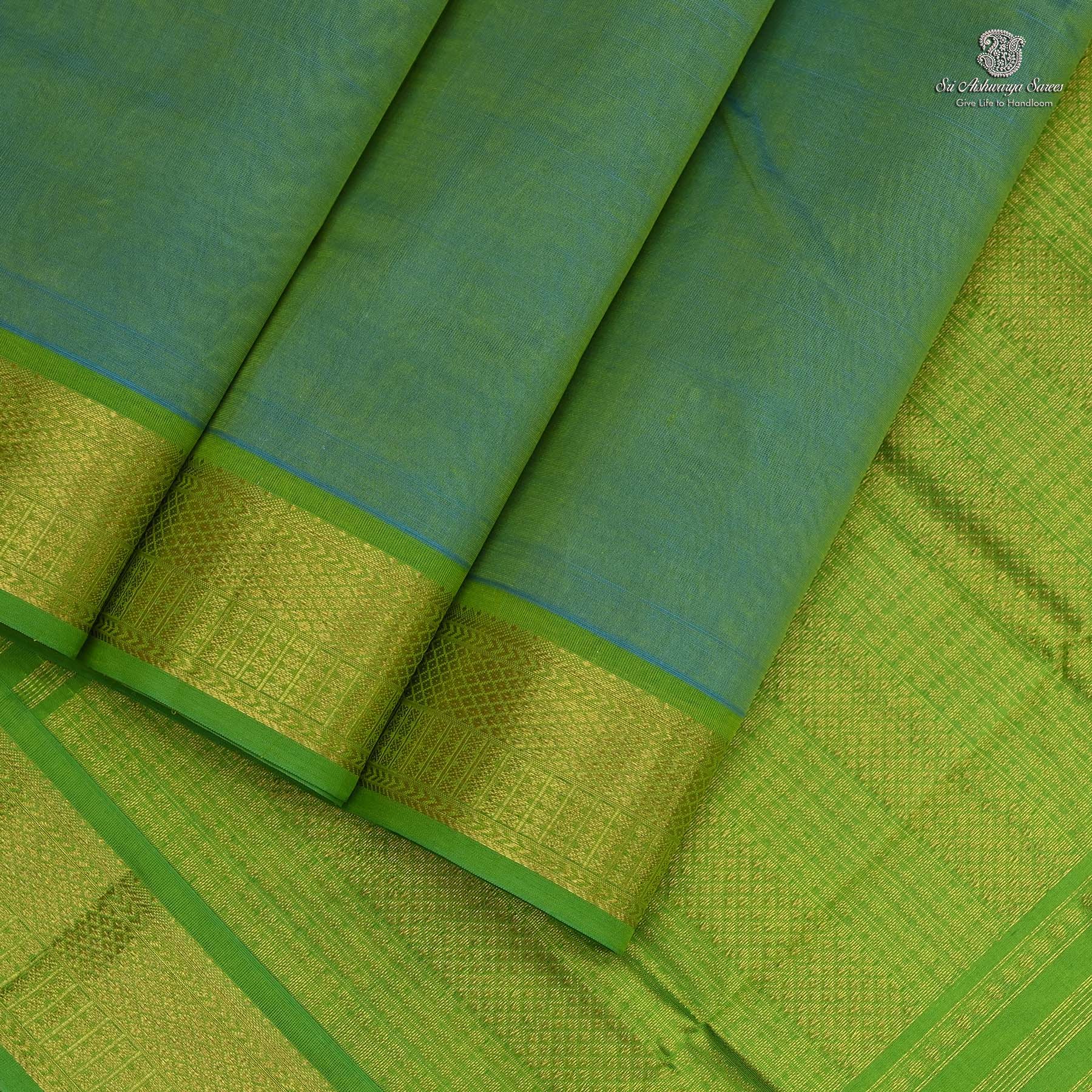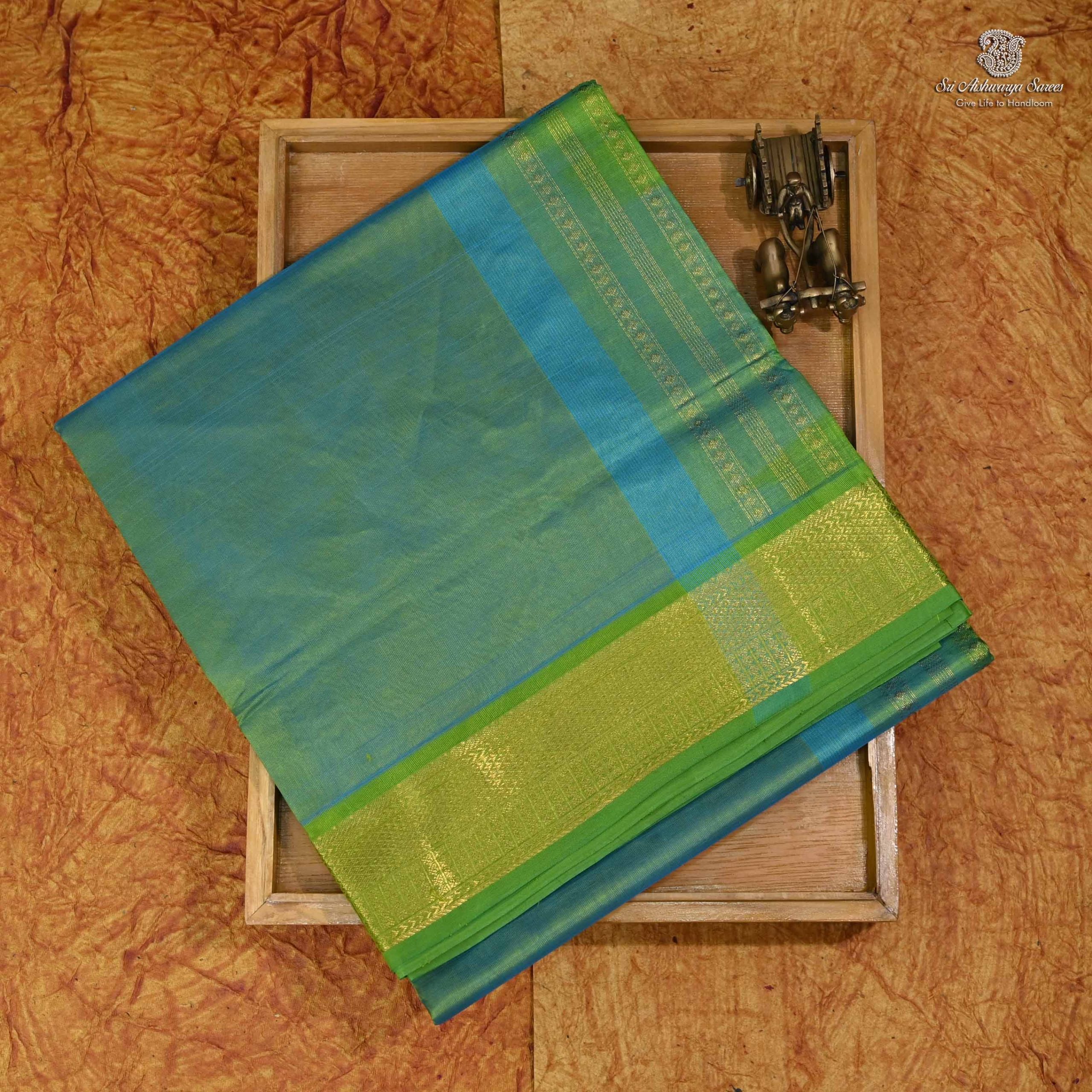 Pure silk cotton saree with a Turquoise Green body and rich light blue pallu. A graceful handloom piece blending timeless tradition with elegant charm.