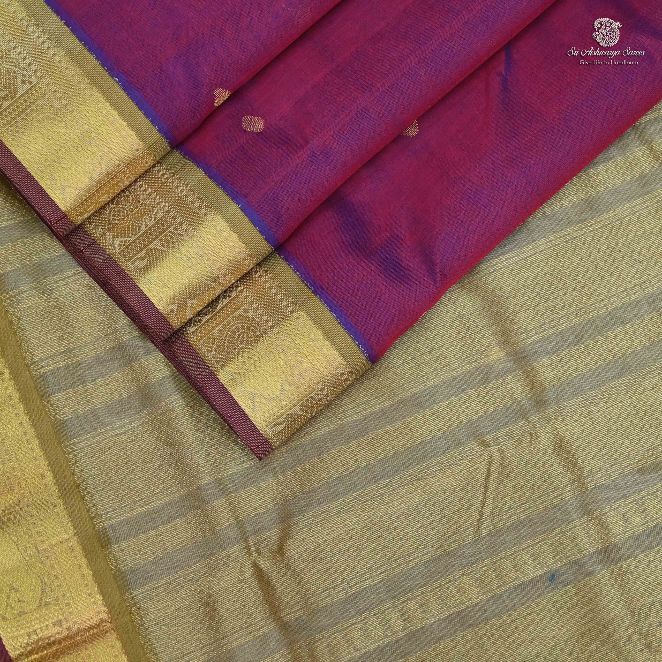 Step into elegance with our Silk Cotton Sarees Butta – Plum Maroon, a perfect blend of tradition and comfort. Made from premium handloom silk cotton, this saree is lightweight, easy to drape, and ideal for festive occasions, office wear, and family gatherings.