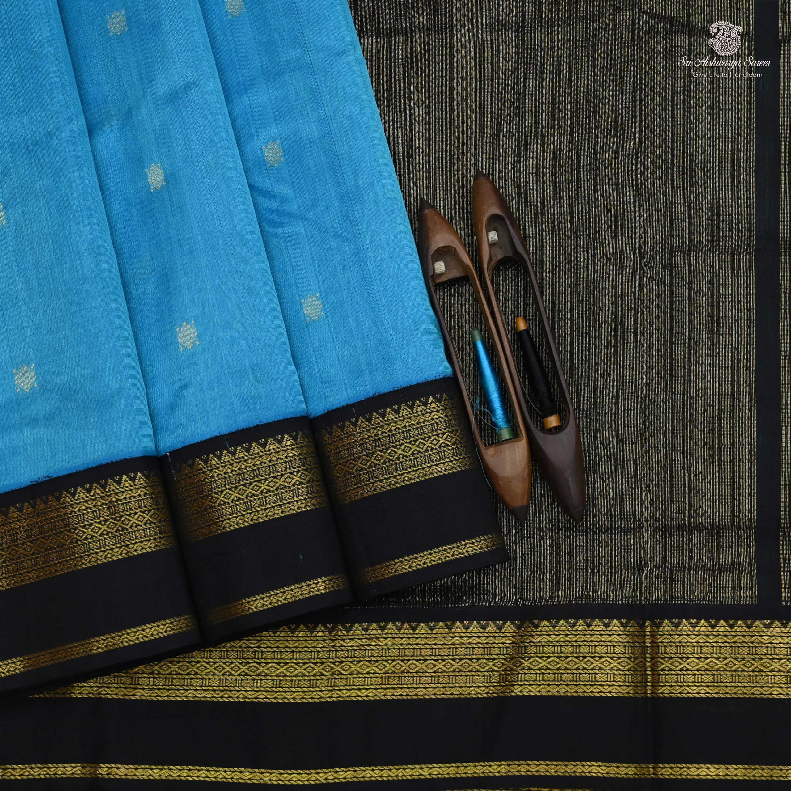 Silk Cotton Sarees Korvai _Cerulean Blue
