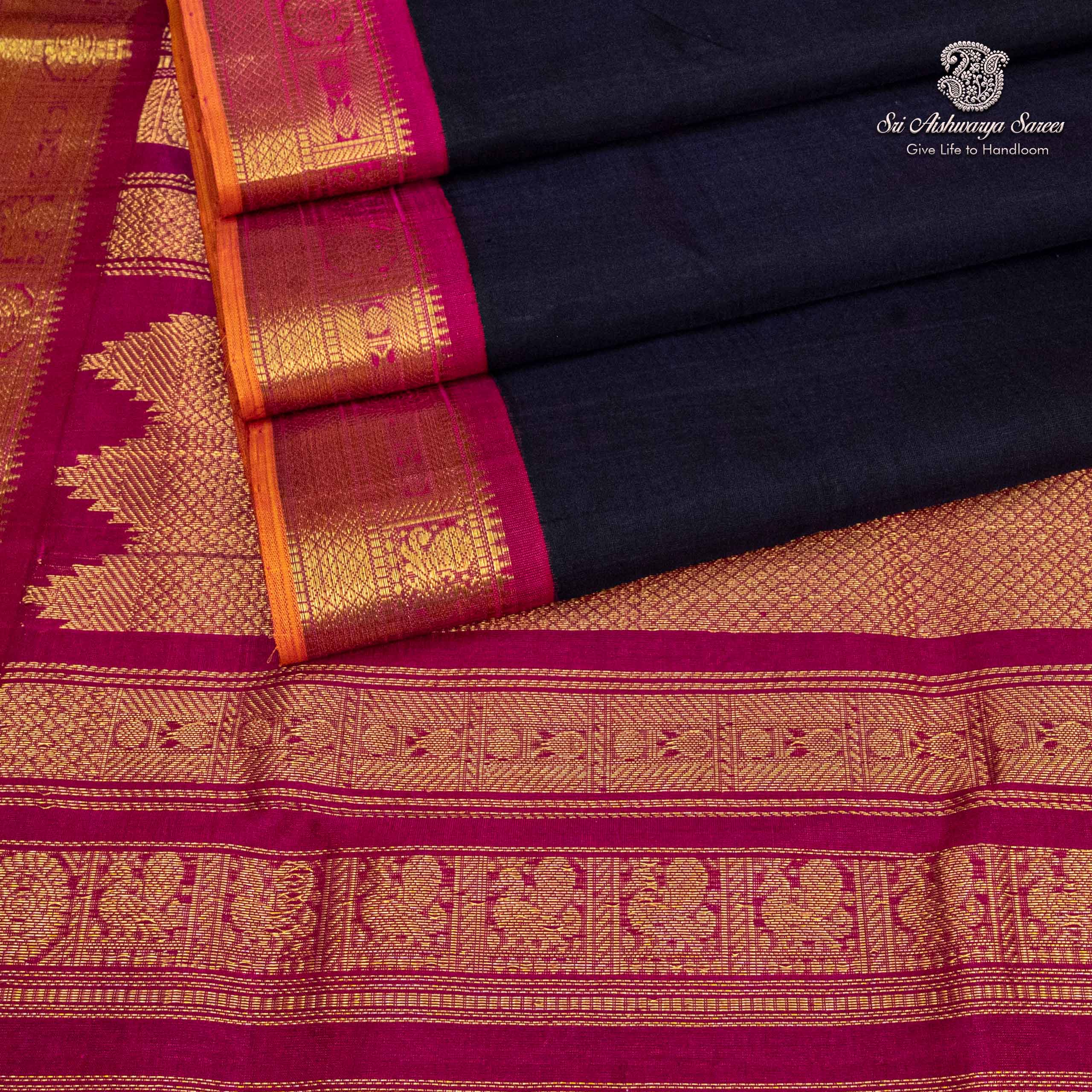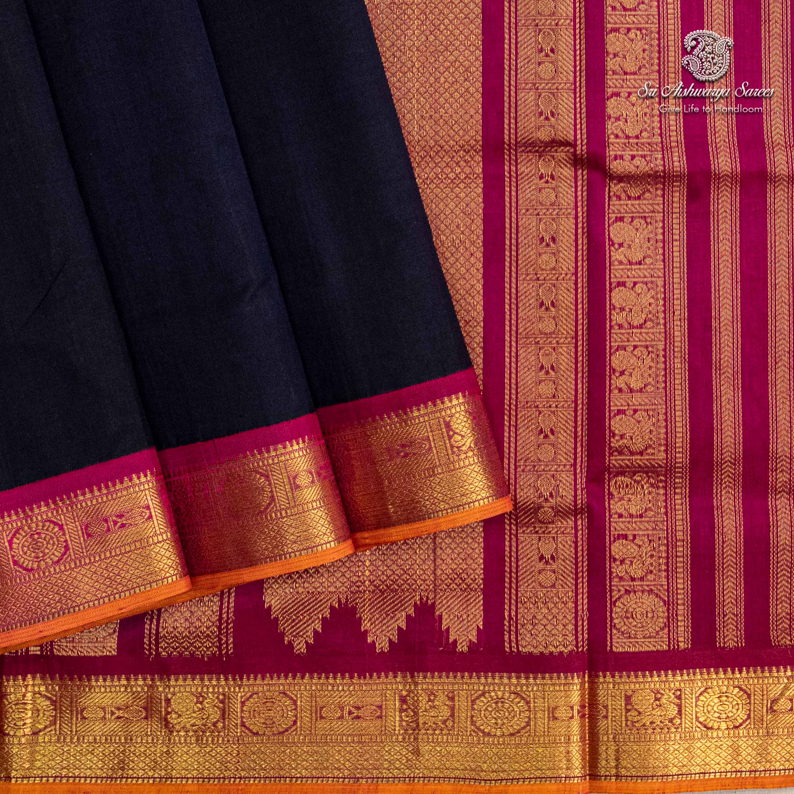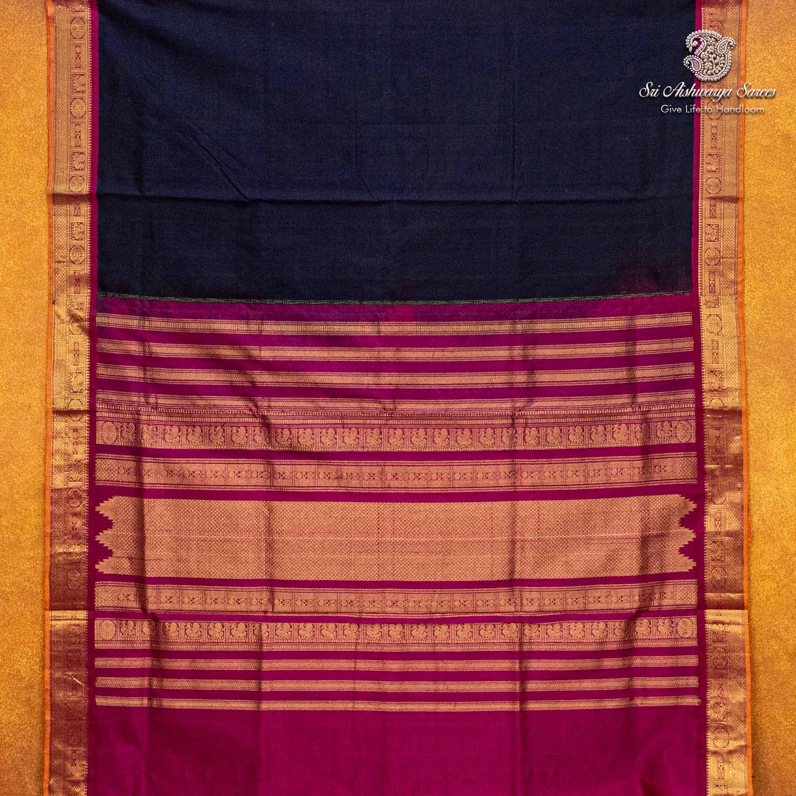 Introducing the Korvai Silk Cotton Saree in Dark Navy Blue, a graceful blend of tradition and modern elegance. Crafted from high-quality silk cotton, this saree offers exceptional comfort along with refined sophistication. It an ideal choice for festive occasions, family gatherings, and elegant everyday wear.