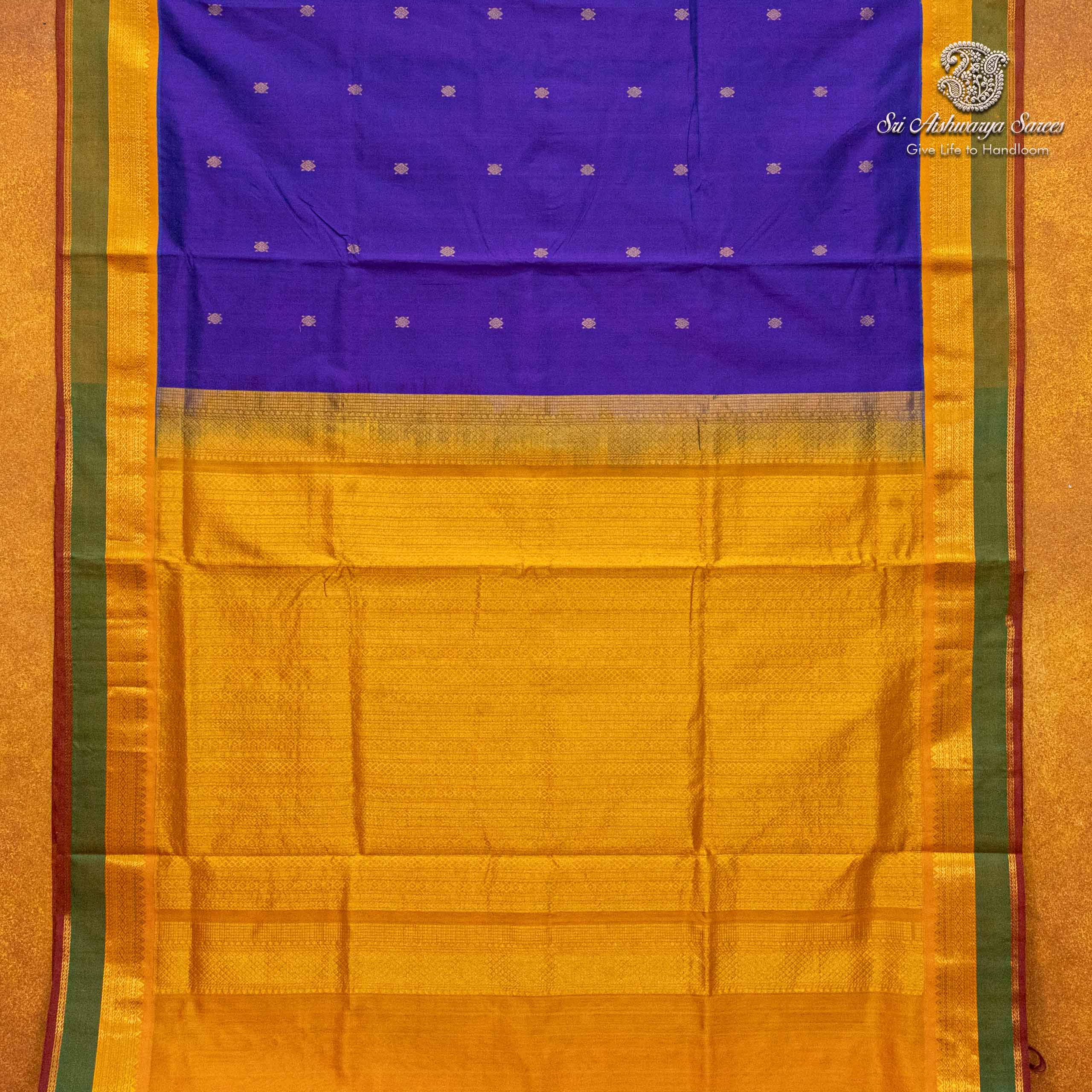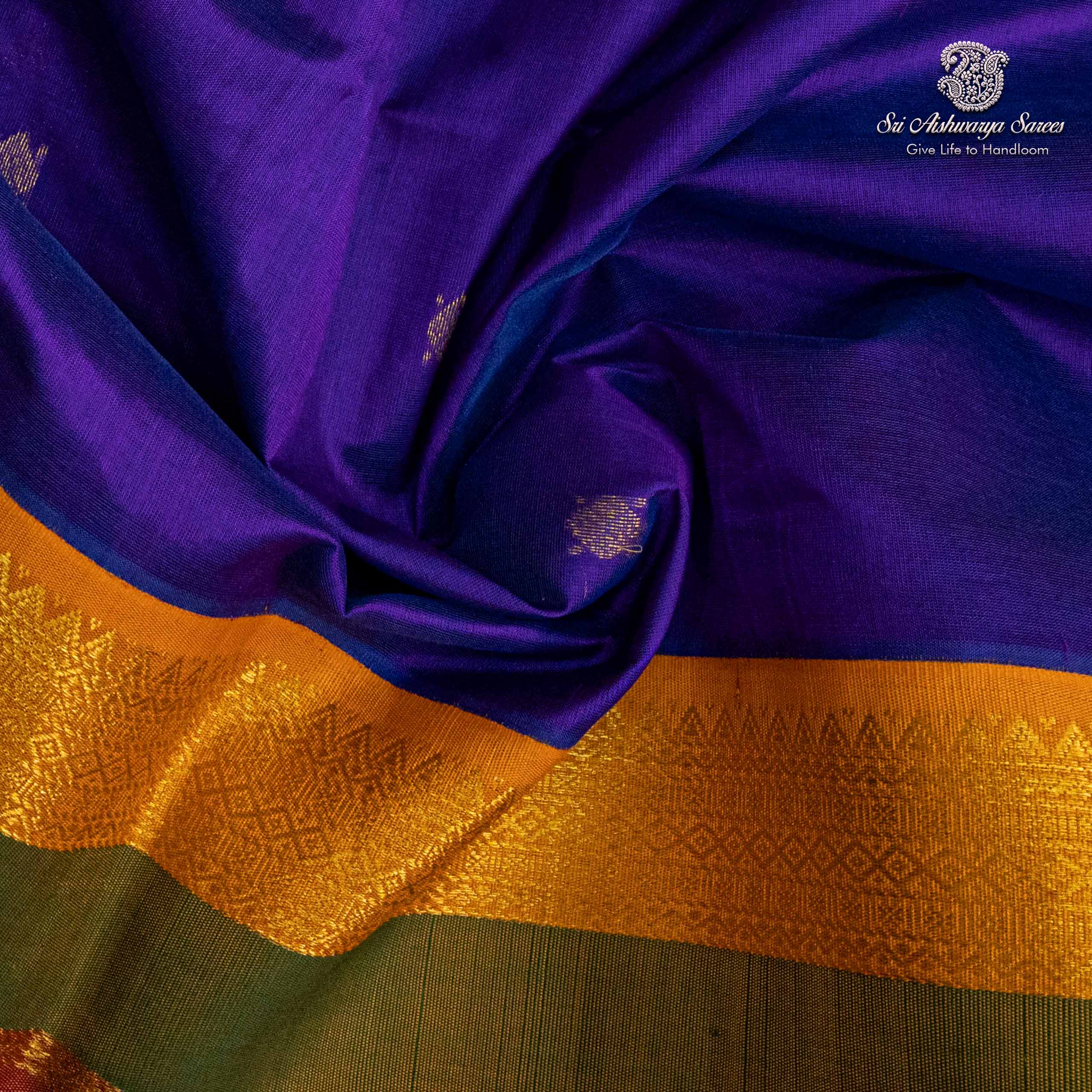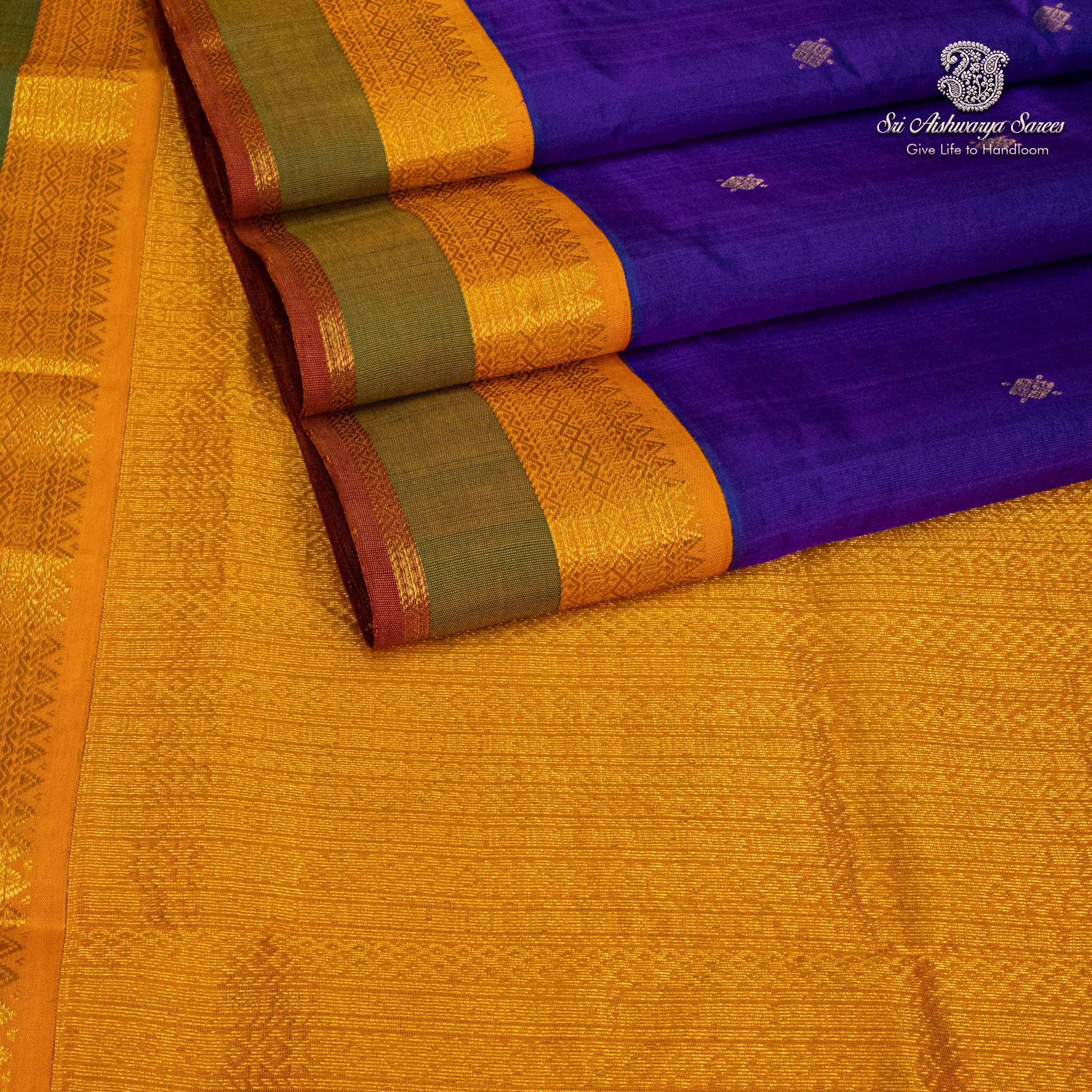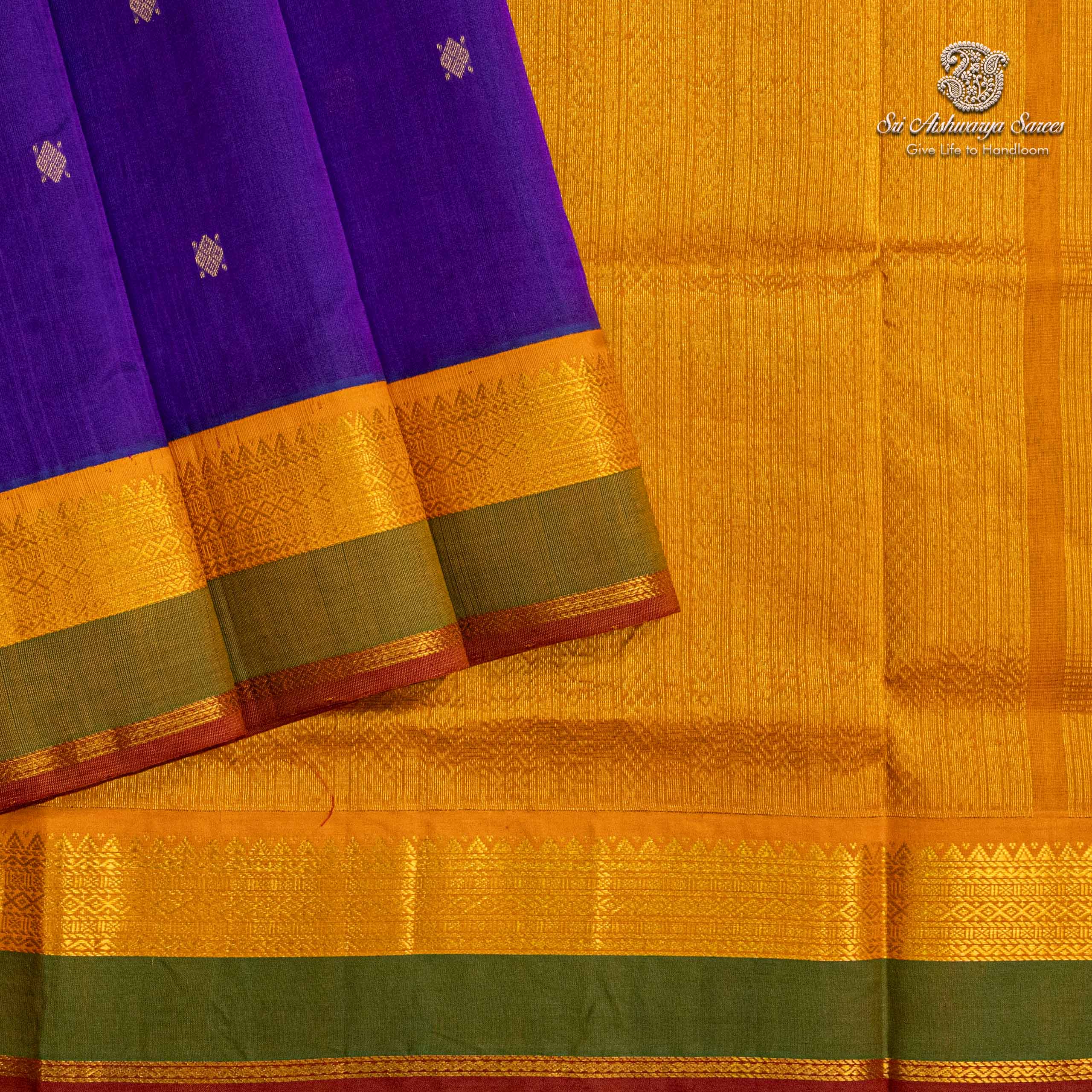 Introducing the Korvai Silk Cotton Saree in Dark Violet, a graceful blend of tradition and modern elegance. Crafted from high-quality silk cotton, this saree offers exceptional comfort along with refined sophistication. It an ideal choice for festive occasions, family gatherings, and elegant everyday wear.