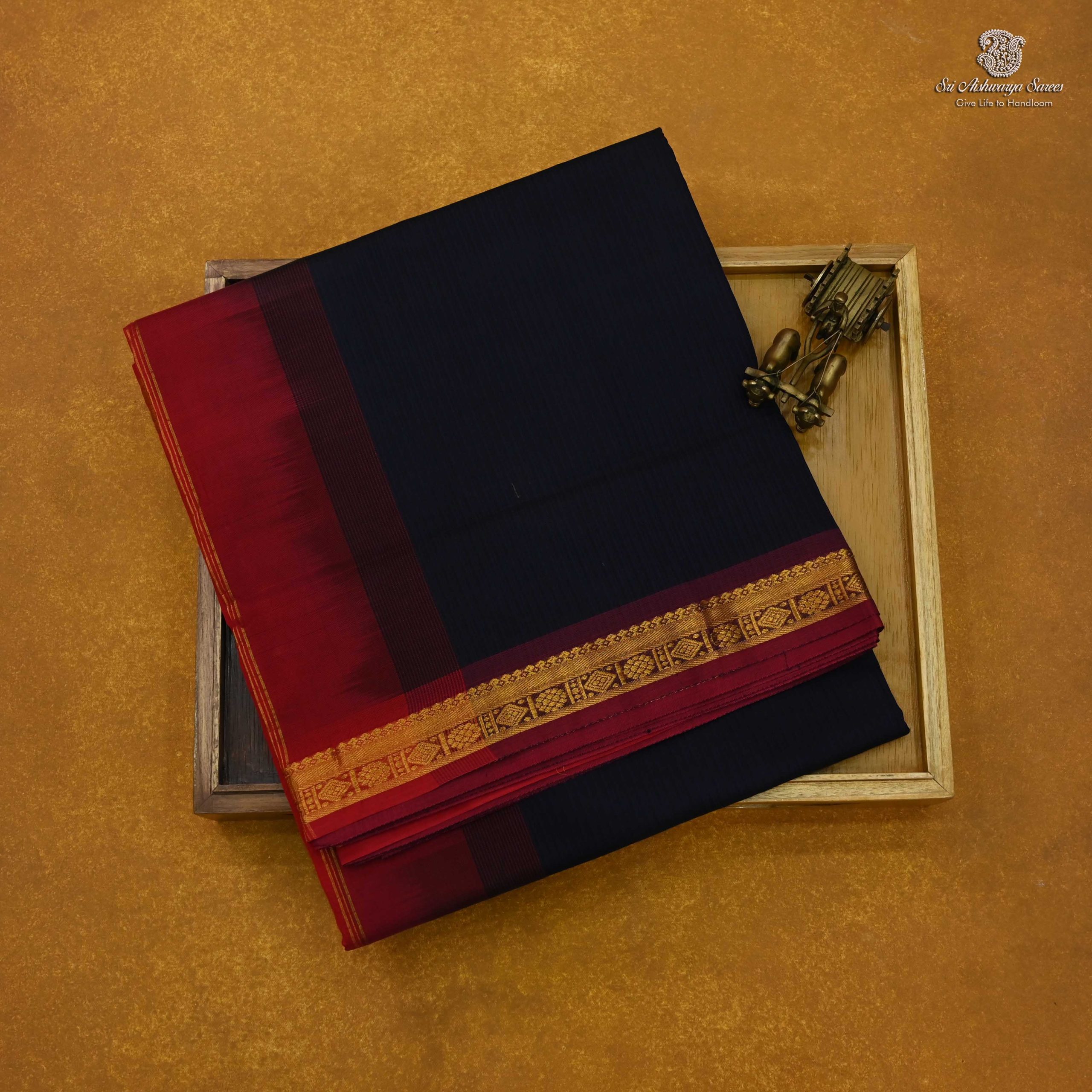 Pure silk cotton saree with a Dark Blue body and simple Burgundy Pink pallu, its pure vibrant and blended elegance with traditional charm.